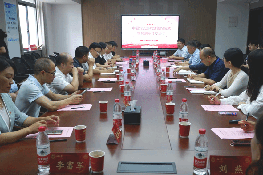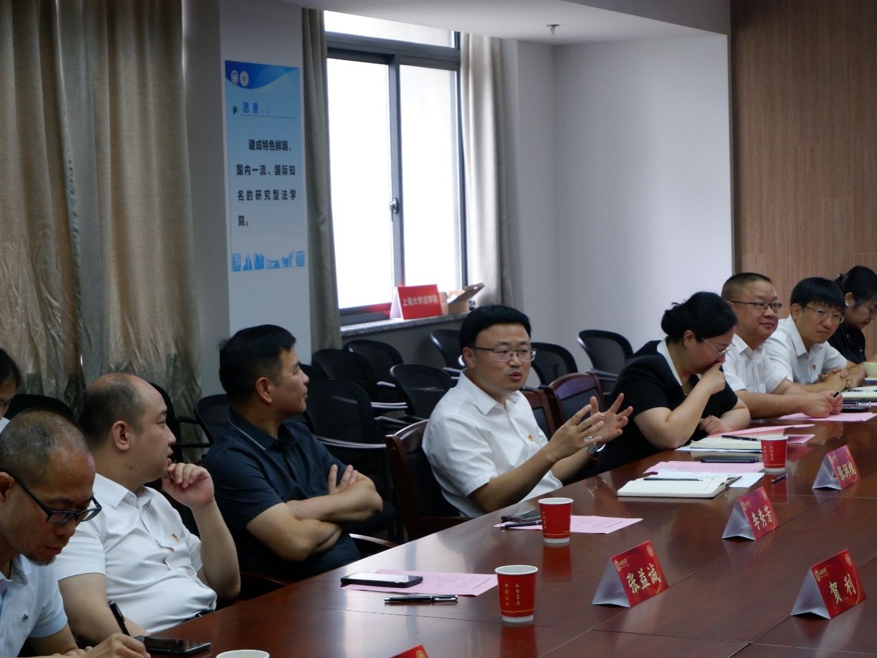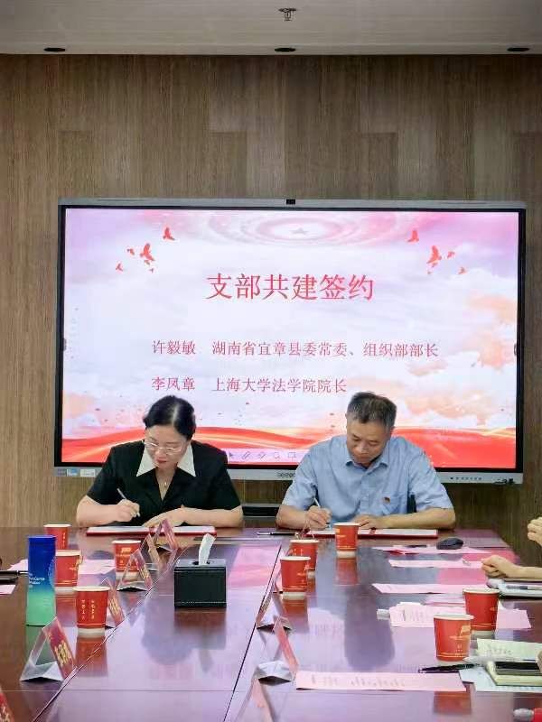 为了认真贯彻落实党的二十大精神,进一步继承邓中夏先烈的革命遗志,弘扬中夏精神,积极探索创新区域化党建新模式,2023年7月3日上午,法学院党委和湖南宜章县委共建中夏党支部签约仪式暨校地座谈交流会在金沙集团1862cc成色宝山校区法学院304会议室顺利举行,校党委常委、组织人事部常务副部长、组织处处长沈艺,中共湖南宜章县委员会书记张润槐出席,法学院党委副书记、院长李凤章和宜章县委常委、县委组织部部长许毅敏代表双方签订共建协议。