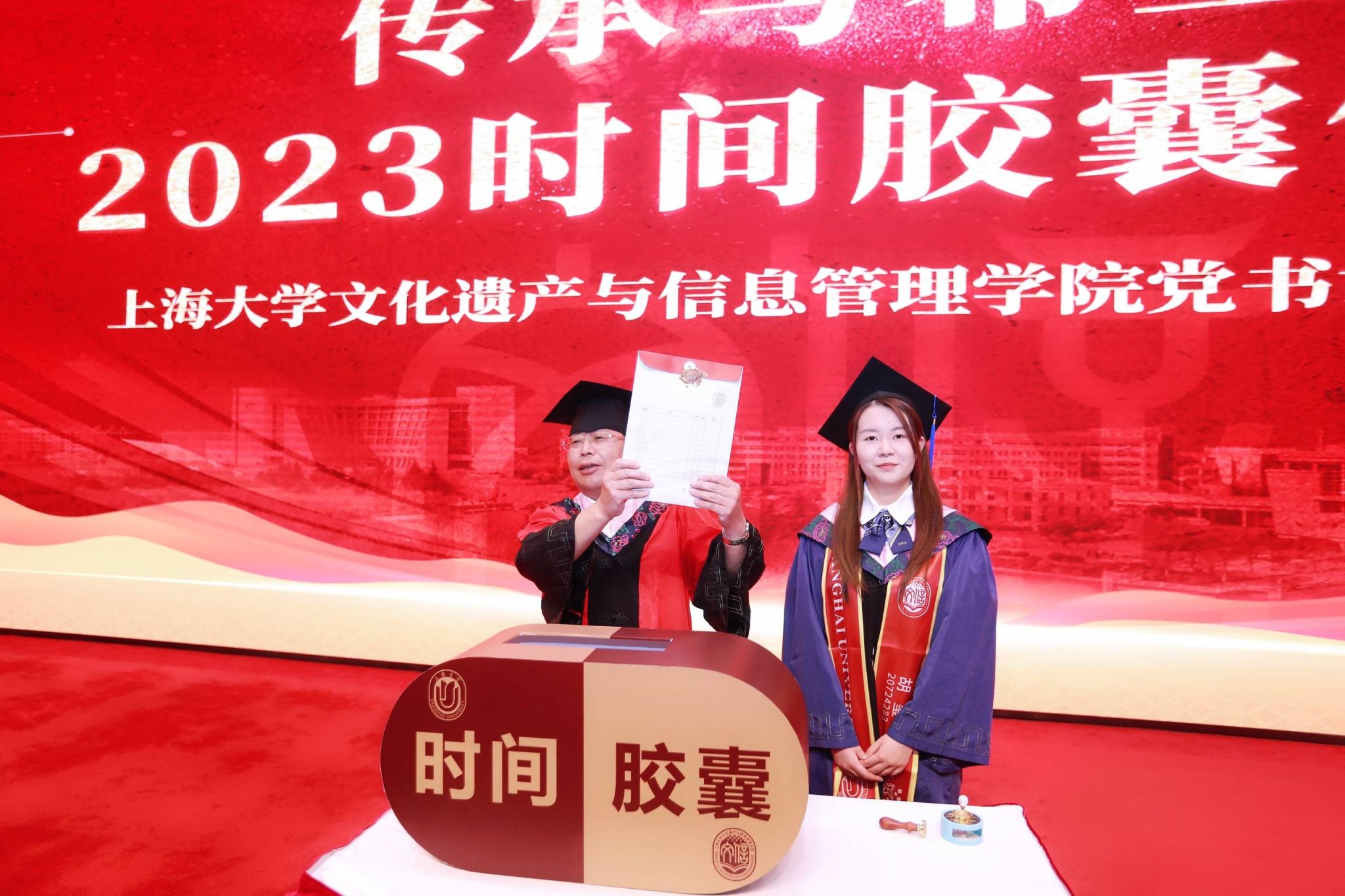 忆往昔纸短,封存不老时光。今年是“时间胶囊”陪伴文信学子的第十四年,小小的信封,包含的是毕业生们的真诚心声,点亮的是心中的期待与希望。在2023届文信学院毕业生的见证下,学院党委书记丁华东教授将2023届文信学院毕业生的梦想卡片封存在档案袋,加盖火漆印章,投入时间胶囊,相约十年后共同开启时光纪念册,追忆逝水年华。