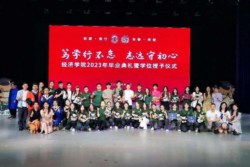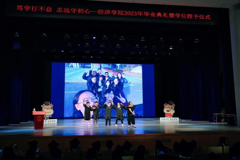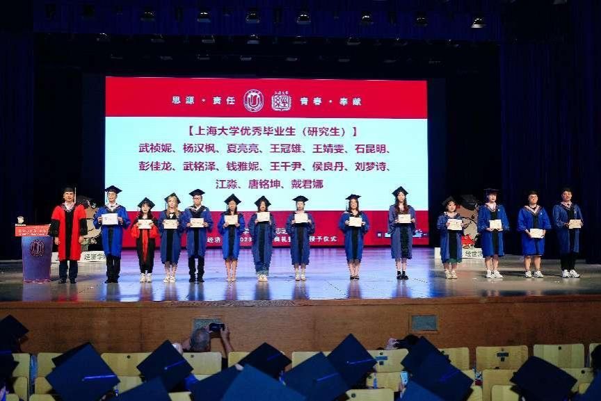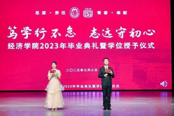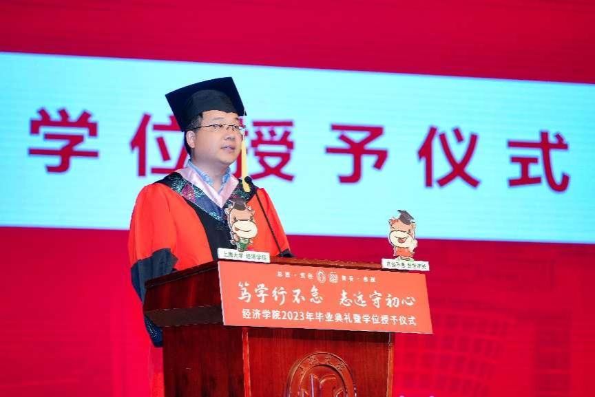 7月3日上午,金沙集团1862cc成色经济学院2023年毕业典礼暨学位授予仪式在宝山校区伟长楼举行。本次毕业典礼以“笃学行不怠,志远守初心”为主题,经济学院党委书记孟添,副院长毛雁冰,党委副书记、副院长冯玉鑫,副院长、经济系主任刘康兵,副院长、金融系主任周思,上海统计学会副会长、导师代表陈新光,学院战略委员会主任殷凤,金融系党支部书记刘建桥,导师代表倪中新、应益荣等以及辅导员、家长出席了本次活动。