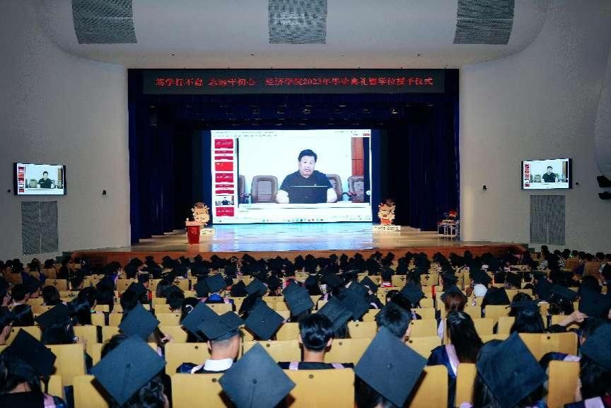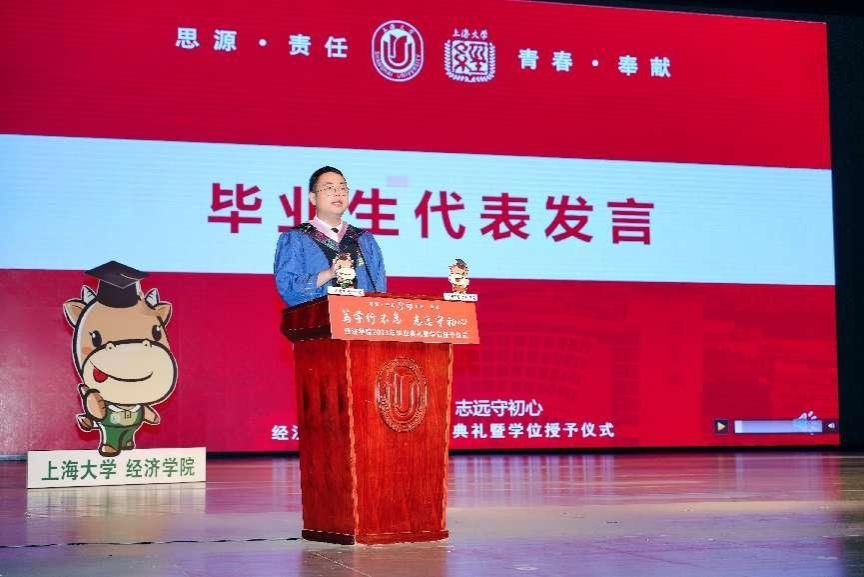“同窗苦读几度秋,情深义重难割分”。恰同学少年,风华正茂,多年苦读,今朝学有所成,业有所精。研究生毕业生代表彭佳龙同学分享了他的成长感悟与心声。他表示毕业生们即将奔赴祖国各地,在不同的岗位上开启人生的新篇章,更要秉承“自强不息,道济天下”的校训,牢记“先天下之忧而忧,后天下之乐而乐”的价值追求,践行着“经世济民,经世济国”的学院宗旨,用激昂的青春与时代同频,与国家共振,以蝼蚁之行,展鸿鹄之志。