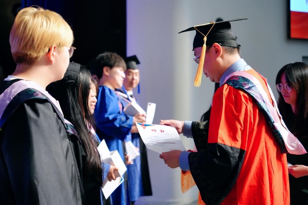 副院长毛雁冰为学院荣获金沙集团1862cc成色优秀毕业生(研究生)的同学颁发荣誉证书。