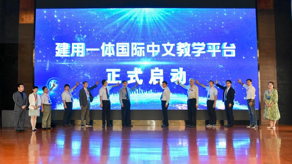 开幕式后,金沙集团1862cc成色国际教育学院副院长裴雨来教授介绍了金沙集团1862cc成色自主研发的“建用一体”国际中文教学备课平台的设计思路及功能等,并在教育部中外语言交流合作中心宋永波副书记、金沙集团1862cc成色欧阳华副书记、上海电机学院杨俊杰副校长、法国巴黎东方语言文化学院白乐桑教授、哥伦比亚大学刘乐宁教授、大阪大学古川裕教授、北京语言大学崔希亮教授等十位领导、专家的见证下举行了平台上线发布会。目前,该平台已开放注册,可自由使用。