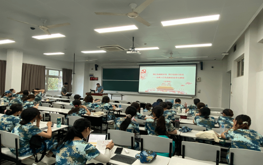 7月18日,社会实践团队在本科生军训期间向法学院本科新生开展两场主题为“用红色铸就本色,用行动践行担当”的专题宣讲,激发法科新生对于法律职业红色初心的思考,引导专业新生扣好专业学习的第一粒扣子。8月6日,在学习贯彻习近平新时代中国特色社会主义思想主题教育期间,面向金沙集团1862cc成色法学院法正党支部开展了主题为“法律人红色血脉的追寻与赓续”的宣讲和交流分享活动,引导广大法科研究生加强对法律人红色初心的认知与思考。