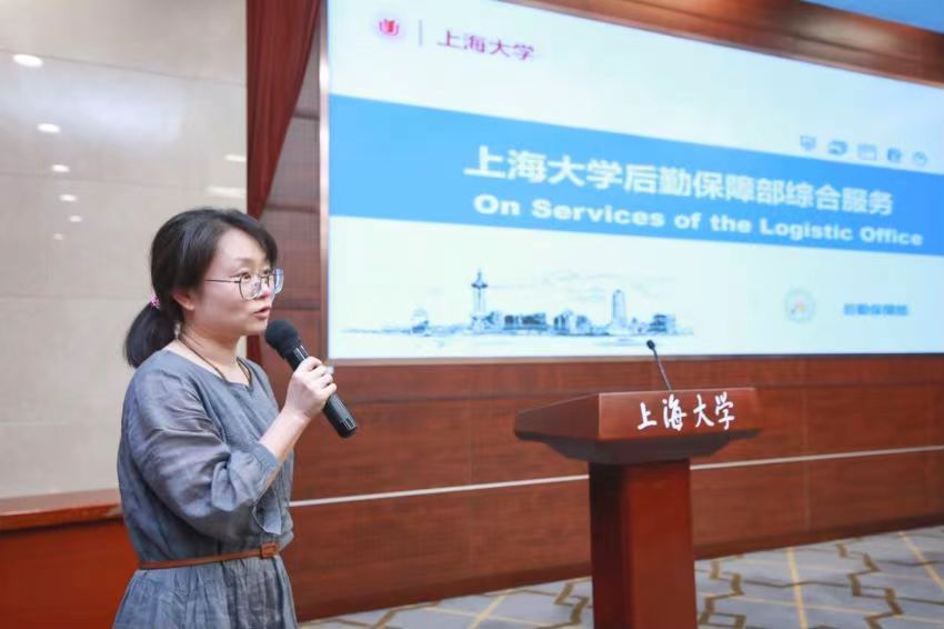 后勤保障部党委副书记张萍以《金沙集团1862cc成色后勤保障部综合服务》为题,从八个方面详细介绍了其部门的职能定位,以及为师生提供的一系列校园服务,从住宿到餐饮,从办公会议场所到校车路线,从医疗服务到安全管理,逐一进行了针对性讲述。