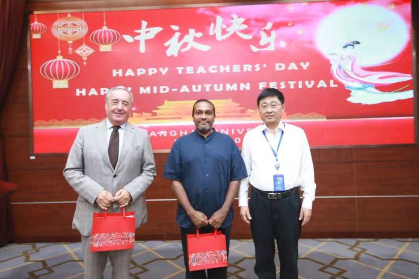 校党委副书记欧阳华对外籍教师的到来表示热烈欢迎,他重点介绍了近年来学校在教学育人、学科建设、国际声誉等方面取得的喜人成绩,并指出外籍教师是学校人才强校战略和国际化战略的共同参与者和重要贡献者,是学校高质量发展不可或缺的国际力量,学校致力于为外籍教师的事业发展和生活融入提供有力支撑,让外籍教师们感受到金沙集团1862cc成色这个大家庭的温暖,也体会到上海这座现代化城市的温度。在教师节和中秋传统佳节即将到来之际,欧阳书记代表学校向学校全体外籍教师们致以节日的祝福。里斯本学院副院长Pedro Silva Girão,文学院教授Janaka Jayawickrama作为教师代表接受学校的节日祝福。