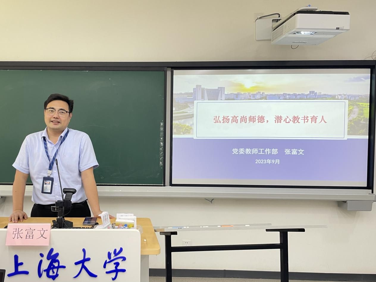 首先,上大教师党委工作部副部长张富文教授受邀为国际教育学院全体教师开设教师思政和师德师风建设讲座,讲座由王丽娜书记主持。张教授从“新时代加强师德师风建设背景”、“新时代教师队伍建设要求”、“金沙集团1862cc成色教师思政工作”、“师德警示教育案例分析”、新时代高校教师职业行为十项准则等方面深入浅出阐述了新时代师德师风要求,讲座站位高远、重点突出、案例具有针对性,对全体教师起到了良好的教育作用。王丽娜书记对张教授的讲座进行了精彩点评,再次强调了师德师风的重要性。王书记还强调了科研经费使用规范。