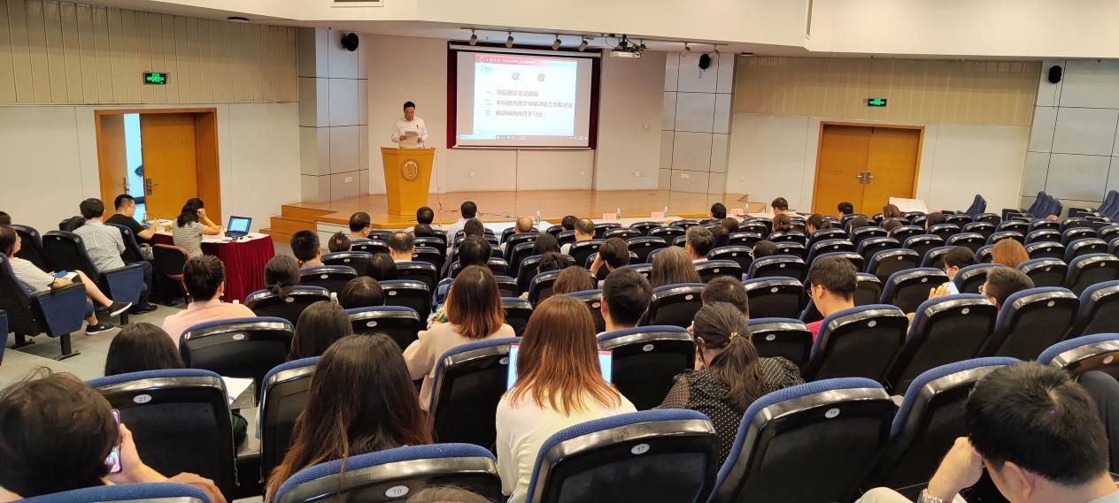 本次全院大会议程主要分为学院相关情况通报,本科教育教学审核评估工作推进会和师德师风教育学习会三部分。首先,孟添介绍了学院党委上半年以学习贯彻习近平新时代中国特色社会主义思想主题教育为契机,统筹推进各项工作并取得一定成效,下半年将持续加强学院党委的政治领导核心作用,将主题教育的成效转化为学院高质量发展的强大动力,不断推进学院事业取得新成效;另外着重强调当前的重要任务之一是本科教育教学审核评估工作,希望老师们全力以赴,全员参与,形成迎评促建的良好工作氛围;发挥好党支部战斗堡垒作用和党员先锋模范作用,强化身份意识、纪律意识、责任意识,推动审核评估各项任务落地落实,顺利开展。