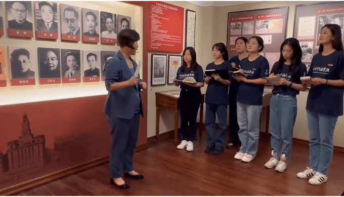 历史是最好的教科书,现场是最直观的再现。1937年,“中国青年新闻记者协会”在上海成立,范长江是创始人之一。从这里出发,中国新闻记者逐步转变为一个有组织、有方向、有责任追求的职业群体,义无反顾地融入到中华民族抗日救亡的伟大洪流中去,成为一支不拿枪的军队。在“中国青年新闻记者协会”成立会址纪念馆,齐爱军教授带领同学们“边看边讲”,通过一面面照片墙、一个个独特场景、一件件珍贵文物,生动再现了范长江转向无产阶级新闻战士的最关键史实,带给大家感受一代代新闻人“以笔为枪”爱国情怀,产生由衷的情感共鸣。