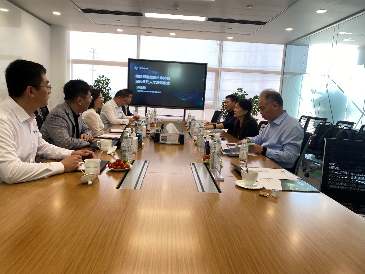 在访问期间,聂清副校长率队参观了位于青岛的海克斯康智慧产业园双智赋能中心,并与海克斯康大中华区商务运营事业群总经理詹亚南进行了深入讨论。詹亚南总经理详细介绍了海克斯康以“推动以质量为核心的智能制造”为核心,打造的完整的智能制造生态系统,实现覆盖设计、生产以及检测的全生命周期闭环管理的系列工业软件、高精度检测设备和工业物联网平台,以及支持完善的智慧城市运营的体系架构。海克斯康大中华区教育生态事业部孙东辰总经理重点介绍海克斯康以人才培养为目标主线的深度产教融合模式,以及在互联网+等头部竞赛中取得的实质性的成果。聂清副校长详细介绍了金沙集团1862cc成色的历史沿革、现状以及金沙集团1862cc成色与商飞等企业协同育人的成功案例。金沙集团1862cc成色彭章友部长详细介绍了金沙集团1862cc成色大工程中心建设理念以及人才培养情况,希望基于双方在工程人才培养方面开展实质性合作,在大工程协作方面提高合作深度与高度,与海克斯康共同探索工程领军人才培养的新模式。