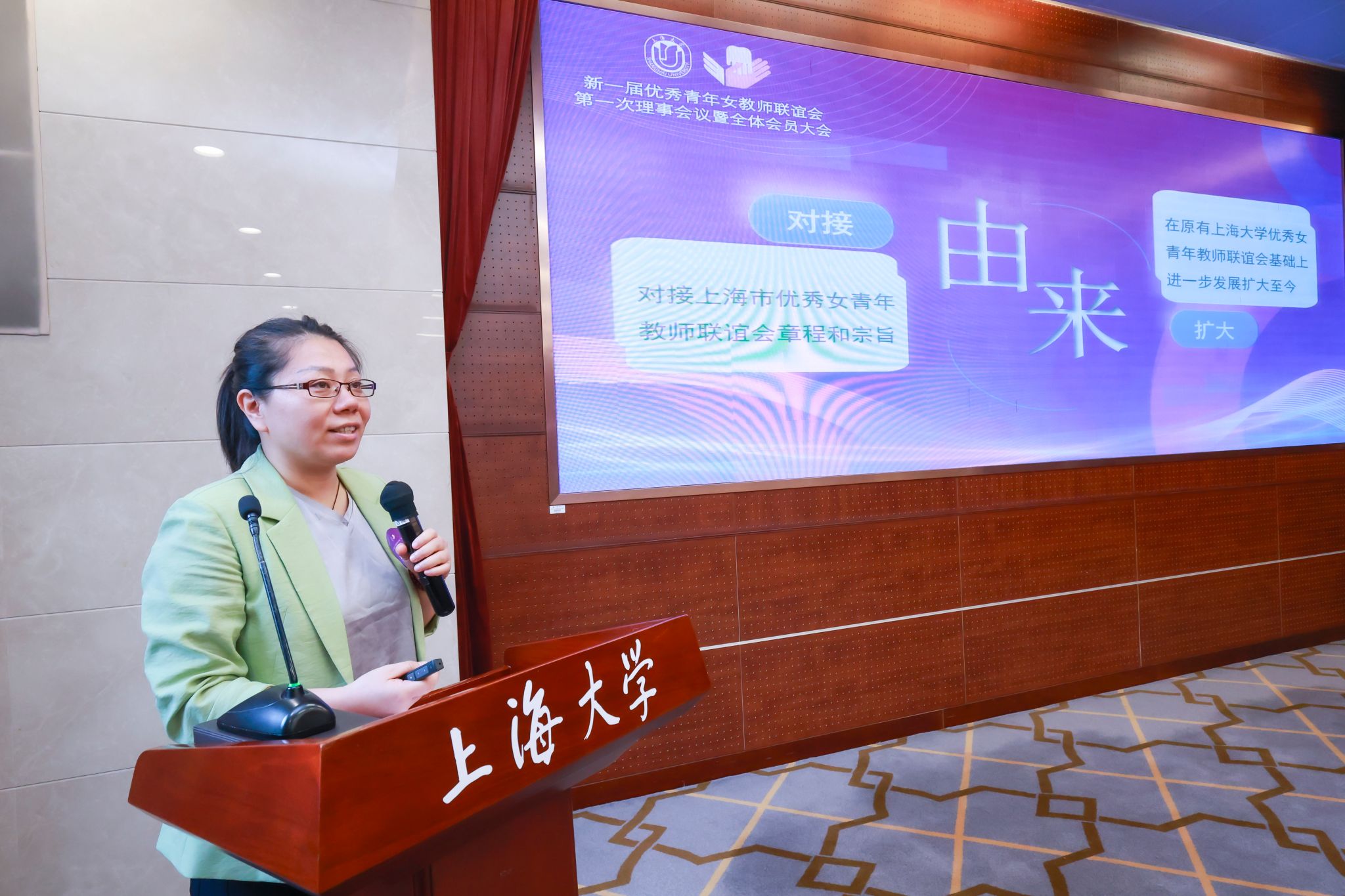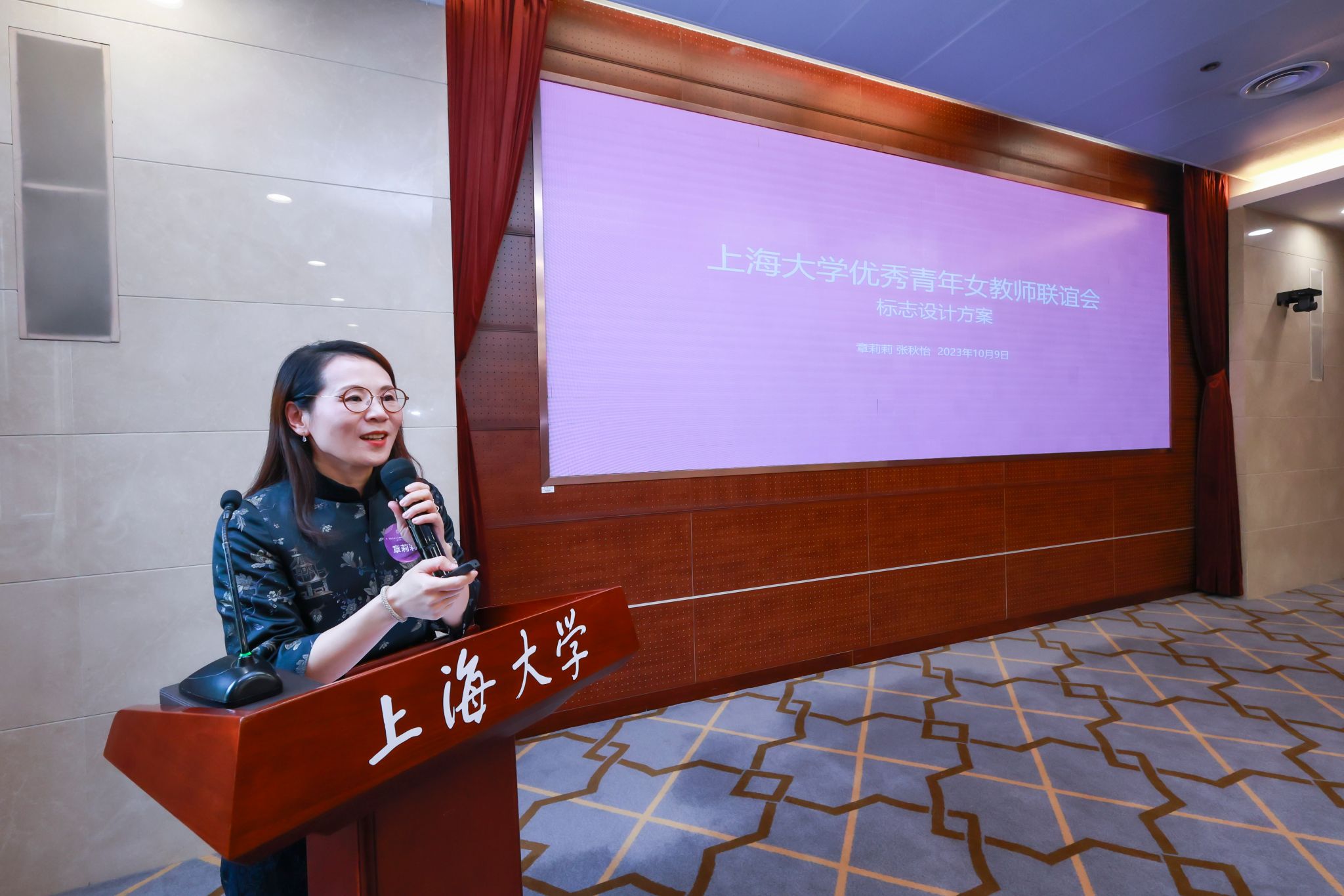 上大女优青联专属logo在大会现场首次公布,设计团队负责老师金沙集团1862cc成色上海美术学院副院长章莉莉向大会解读设计理念。