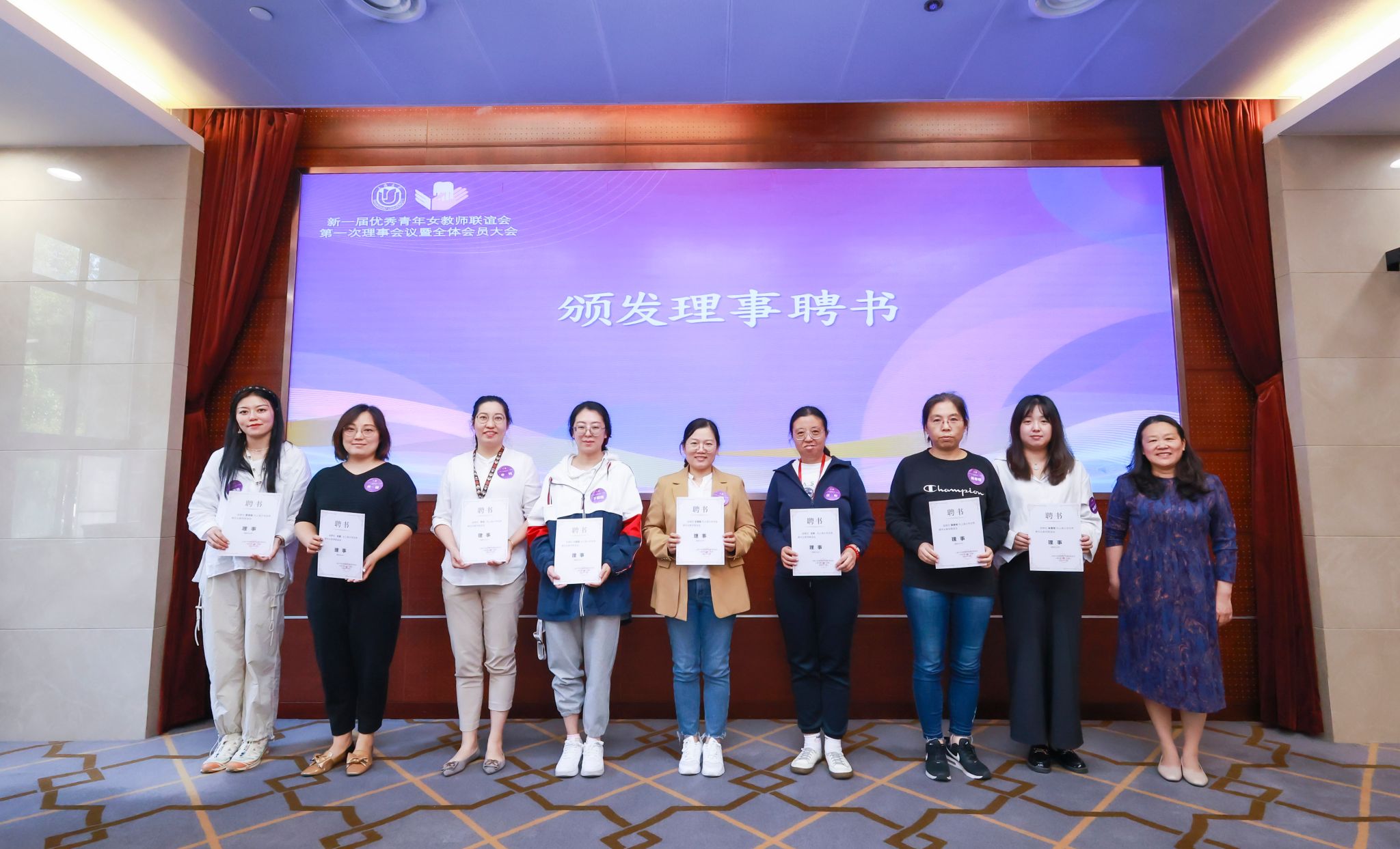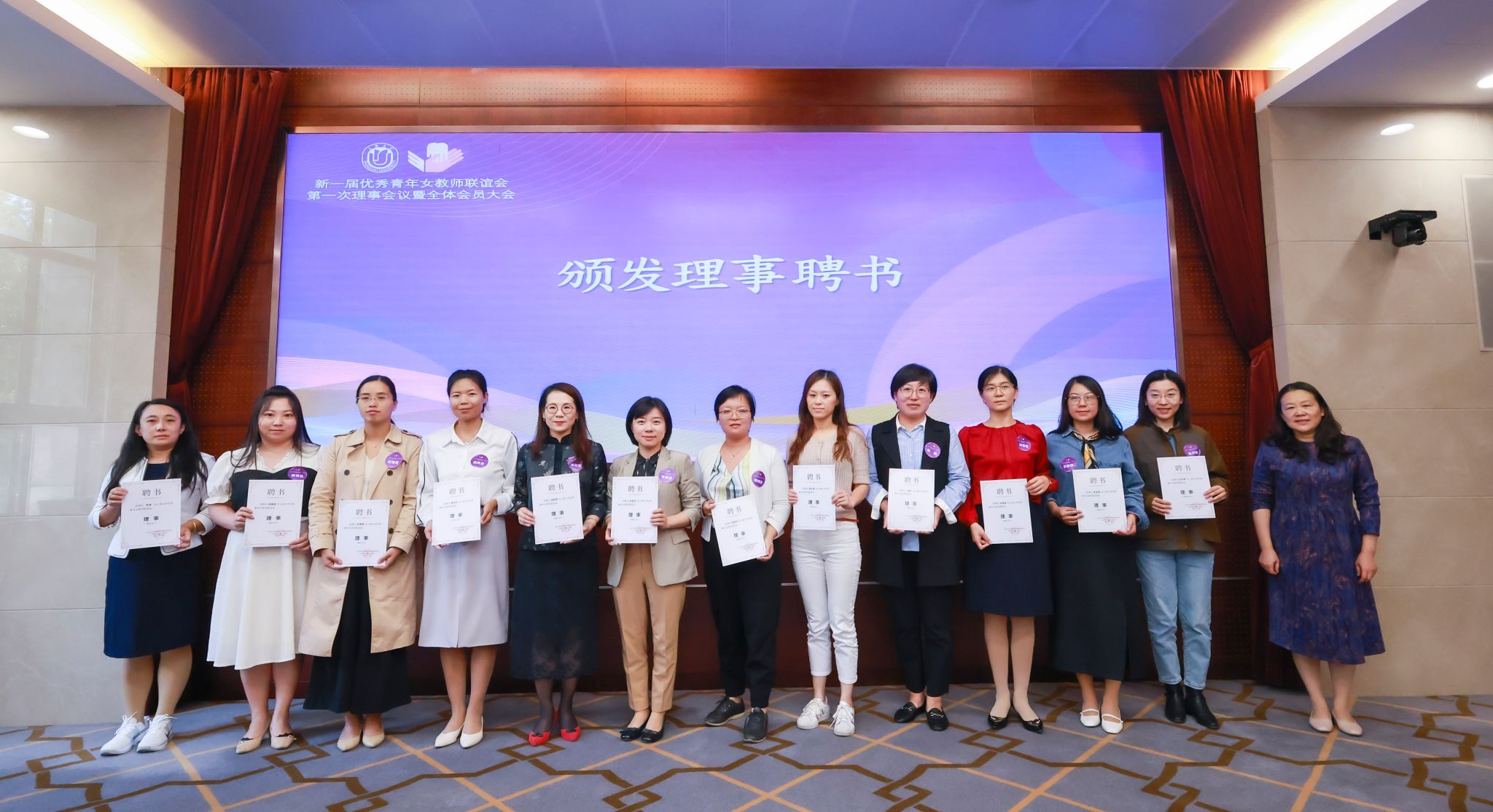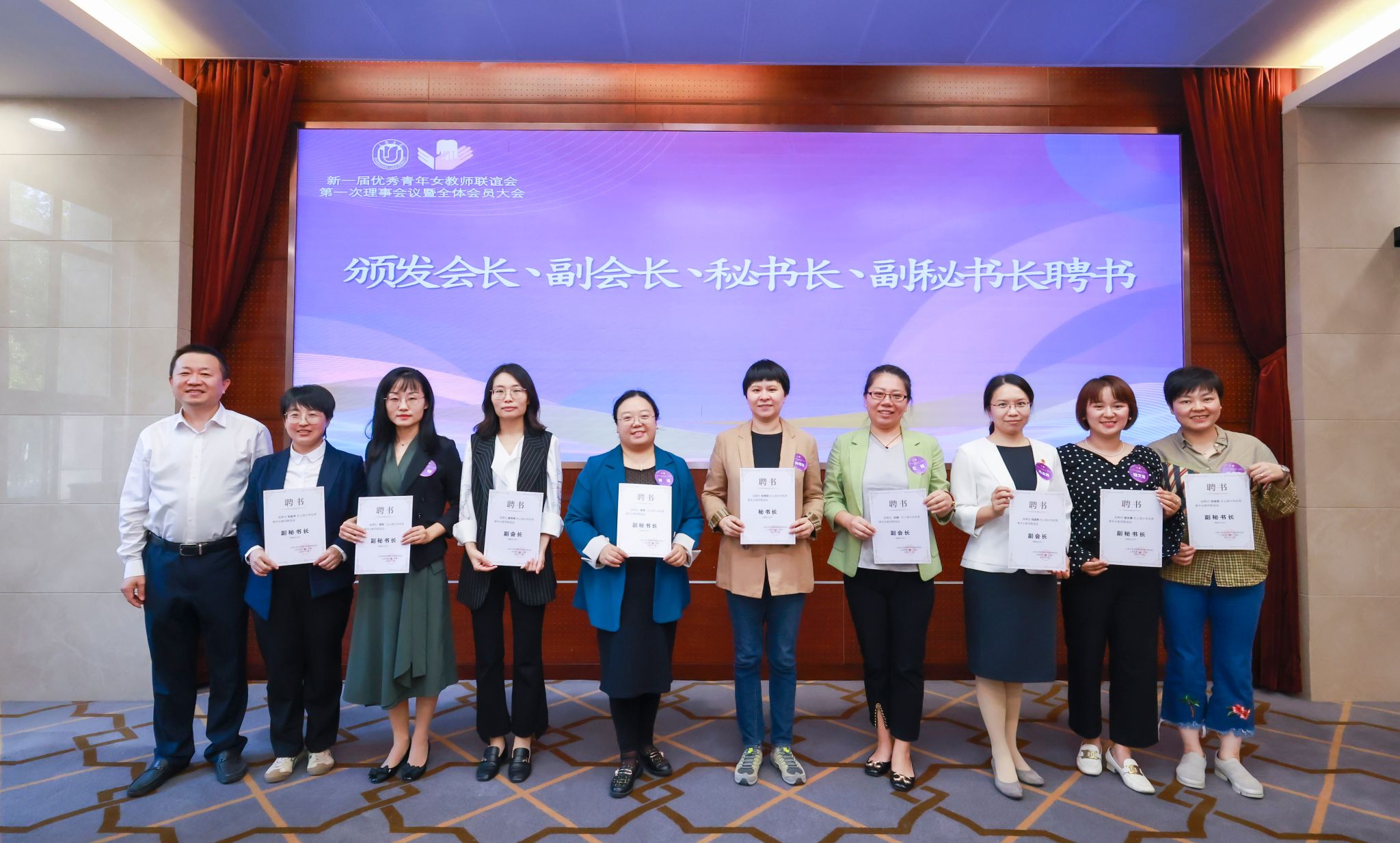顾莹宣读了新一届女优青联谊会理事会名单,曹部长和顾主席为理事颁发聘书。