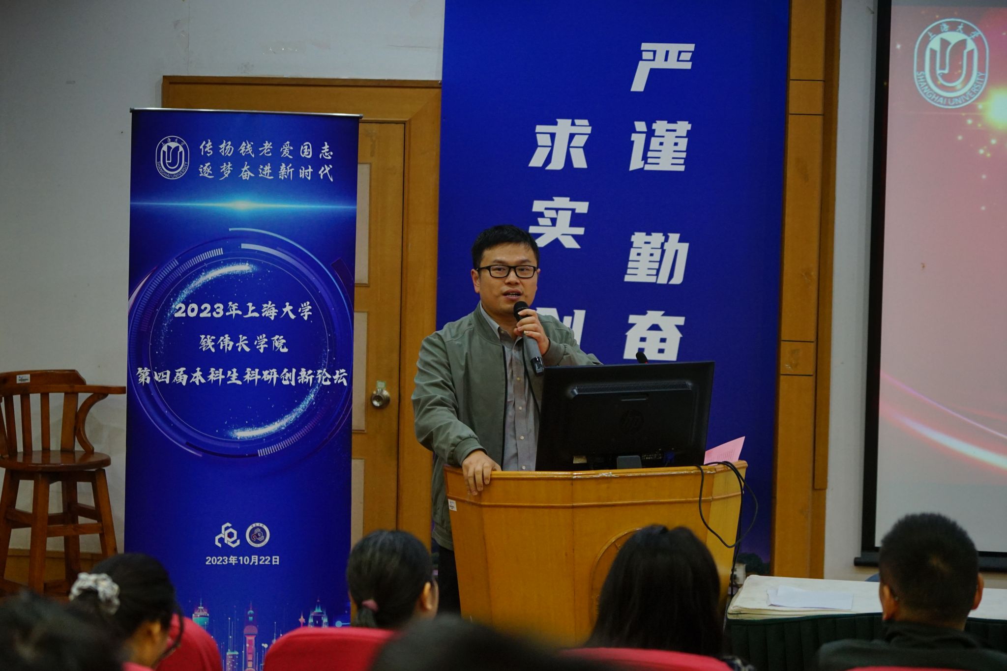 10月22日上午,“传扬钱老爱国志,逐梦奋进新时代”2023年金沙集团1862cc成色钱伟长学院第四届本科生科研创新论坛在校本部J楼隆重举行。上海交通大学郑杭教授,复旦大学魏益民教授,华东师范大学施毅研究员,同济大学刘睿教授、韦萍教授,上海理工大学顾长贵教授,上海应用技术大学邱翔教授,鸿之微科技(上海)股份有限公司副总经理龚奎、高级工程师孙旸云丽等专家应邀担任评委。同时,论坛还邀请到了首届国家自然科学基金青年学生基础研究项目获得者复旦大学本科生单佳骊和上海交通大学本科生孔淇,以及钱伟长学院本科生闫雪涛作学生科研经验分享。钱伟长学院党委书记、校团委书记冯凌燕,钱伟长学院党委副书记、院长周全,钱伟长学院副院长许新建,钱伟长学院各年级学生出席了本次论坛。论坛由钱伟长学院党委副书记、副院长沈青松主持。