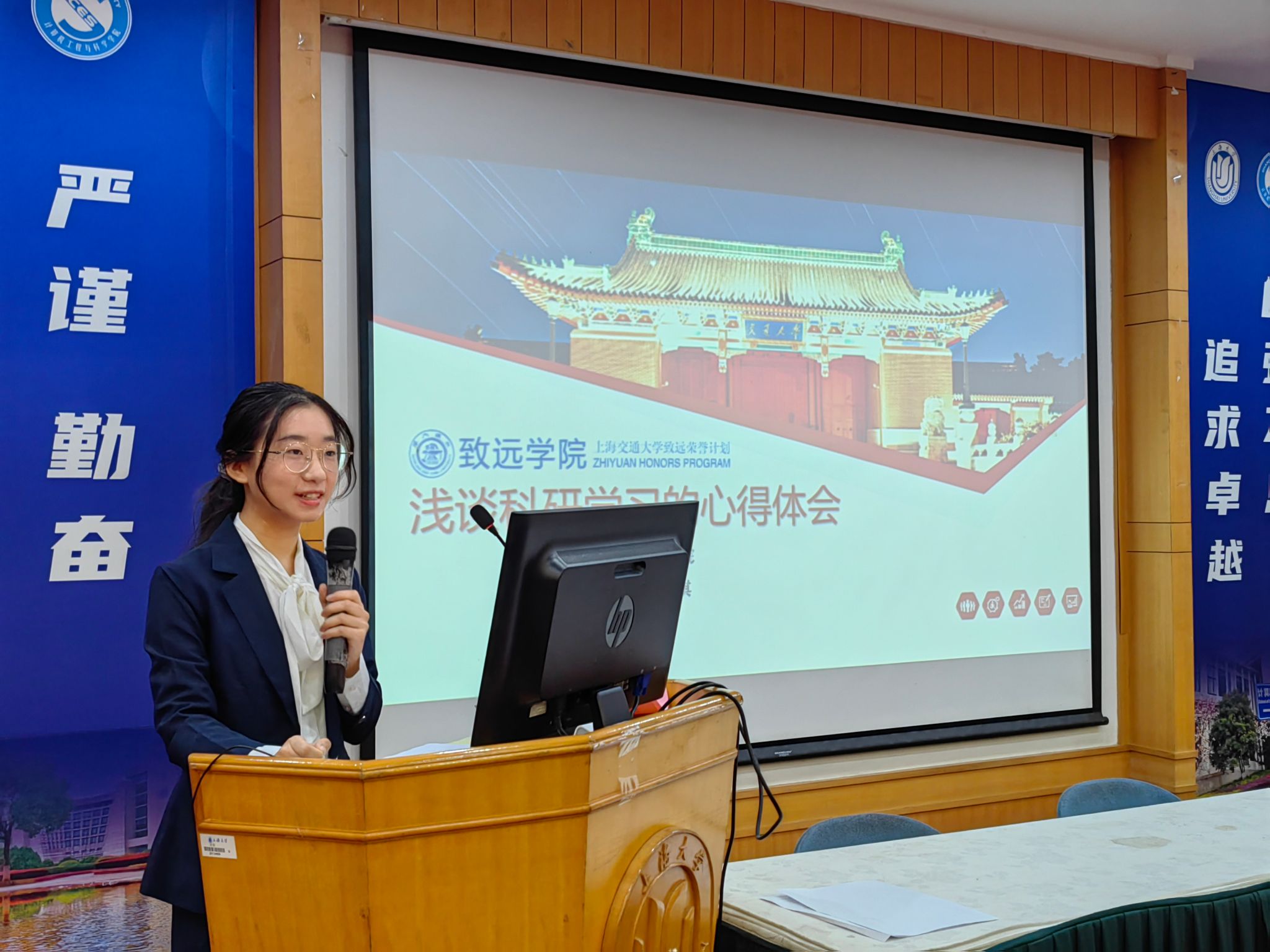 随后,三位朋辈嘉宾进行了科研项目展示与科研经验分享。单佳骊目前在复旦大学数学科学学院魏益民教授的指导下开展整体最小二乘问题的随机算法研究,并尝试探索计算数学领域。在讲述自己的科研和成长经历时,她提到要养成阅读英语文献的习惯,并时刻保有探索精神;同时需要与导师及时沟通,保持密切联系,通过导师的帮助能少走很多弯路。她倡议同学们要坚持不懈,认真选题;勇敢追寻,耐心探索,不因挫折而质疑自己;平衡学业与生活,享受科学探索的过程。最后她祝愿同学们都能在自己热爱的领域走得又远又好。孔淇目前在上海交通大学化学化工学院张万斌教授课题组开展科研。她介绍了自己的研究方向与前期成果,并提出应该对世界和科学保持好奇与兴趣,不要把自己的研究兴趣局限于所学学科,而要打下扎实而广泛的学科基础。她也建议同学们要寻找自己的兴趣点,多参加各类学术交流活动。最后也提到了同学们要在实践中学习,遇到问题并尝试分析、解决是一种很好的成长方式。闫雪涛目前在金沙集团1862cc成色材料基因组工程研究院(MGI)冯凌燕教授课题组开展科研,并将继续在MGI直接攻读博士学位。她从大二开始接触科研项目,推免后将继续研究原有的方向,整个科研过程比较连贯,她向大家分享了本科生如何从零基础开始参与科研工作,并以自己为例为同学们生动地再现了整个学术项目从立项、研究到结项等全链条的过程,同时向大家推荐了相应的科研实用工具和科研方法。