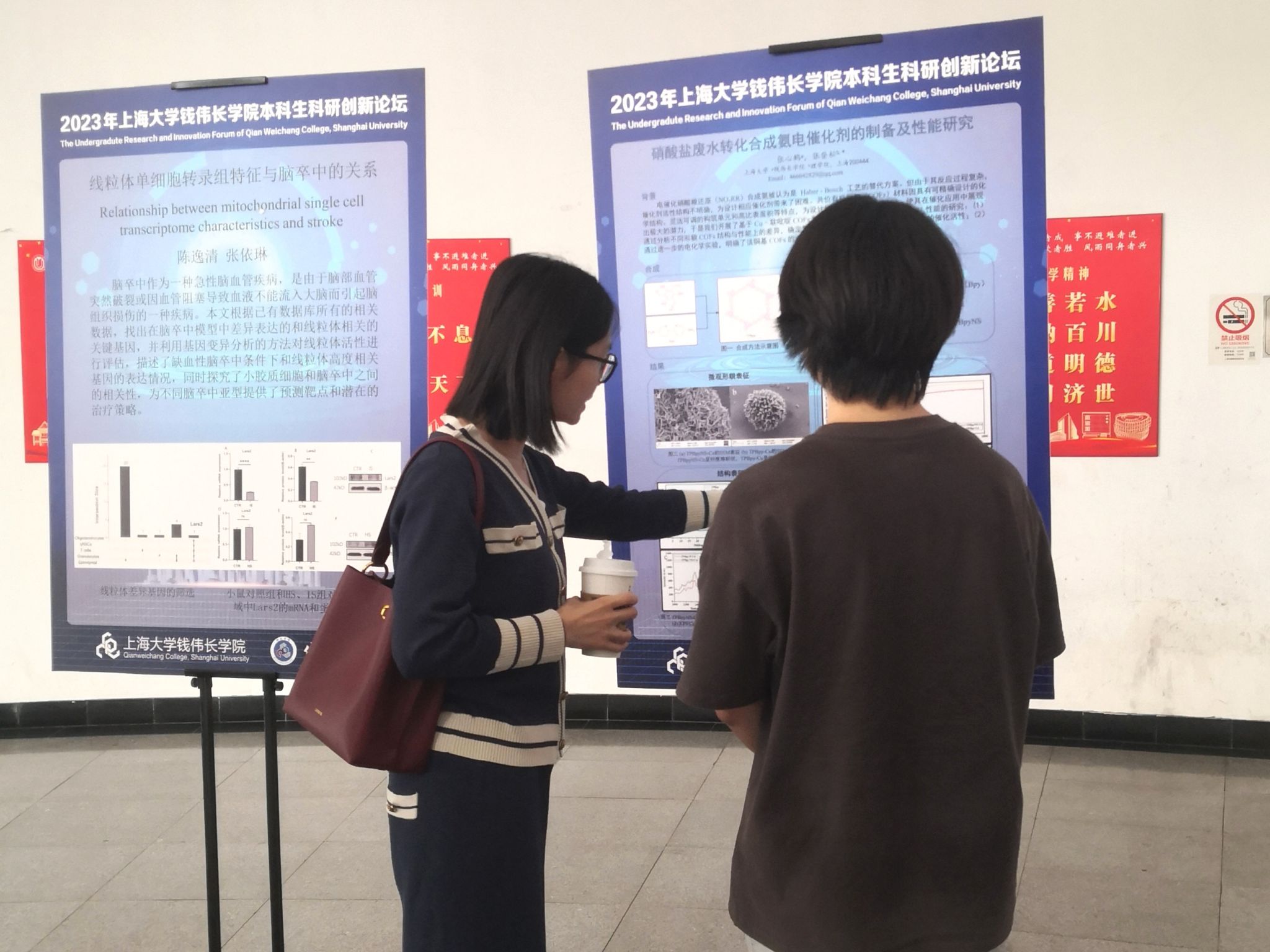 接下来,各参赛项目在J楼大厅进行墙报展示,并接受评委和观摩同学的现场问辩。墙报展示环节气氛热烈,不同的观点碰撞也充分展示并激发了伟长学子对于科研的热情。在本次论坛的答辩环节上,同步开展了钱伟长学院未来科学家培养计划(QUEST)第一期立项项目的中期考核。在三个分论坛上,评委们针对各答辩项目存在的亮点和改进空间给出了富有建设性的意见。
