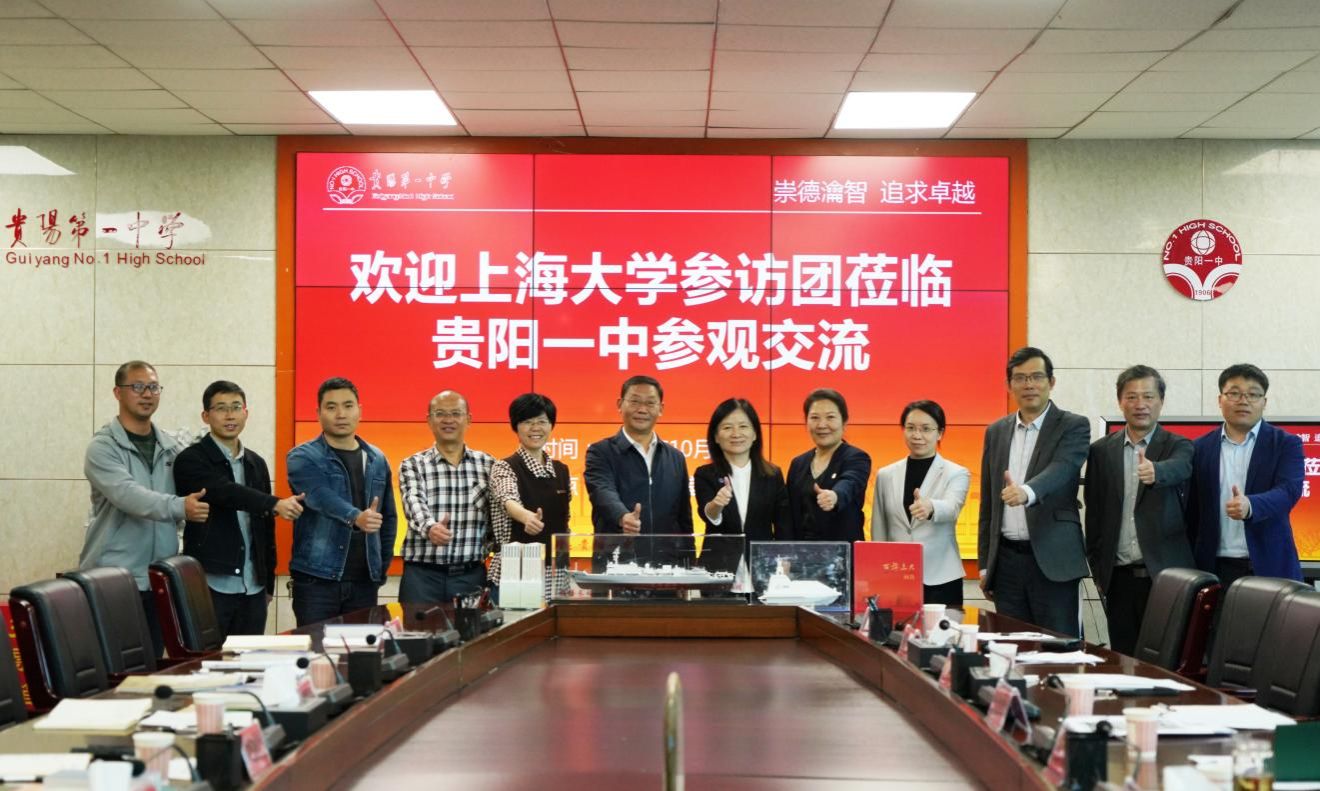 随后,聂清副校长率队赴贵州顶尖高中贵阳市第一中学考察交流,贵阳一中党委书记陈章义、副校长谭美金等热情接待并进行座谈交流。座谈会上,贵州招宣组组长、法学院党委书记徐国明汇报了近年来贵阳一中学子在金沙集团1862cc成色成长成才以及毕业生发展等情况进行分享。聂清副校长与贵阳一中领导就新高考改革落地、双高接续人才培养等进行深入交流,双方一致表示未来继续加强多方位合作,为国家培养更多的栋梁之才。
