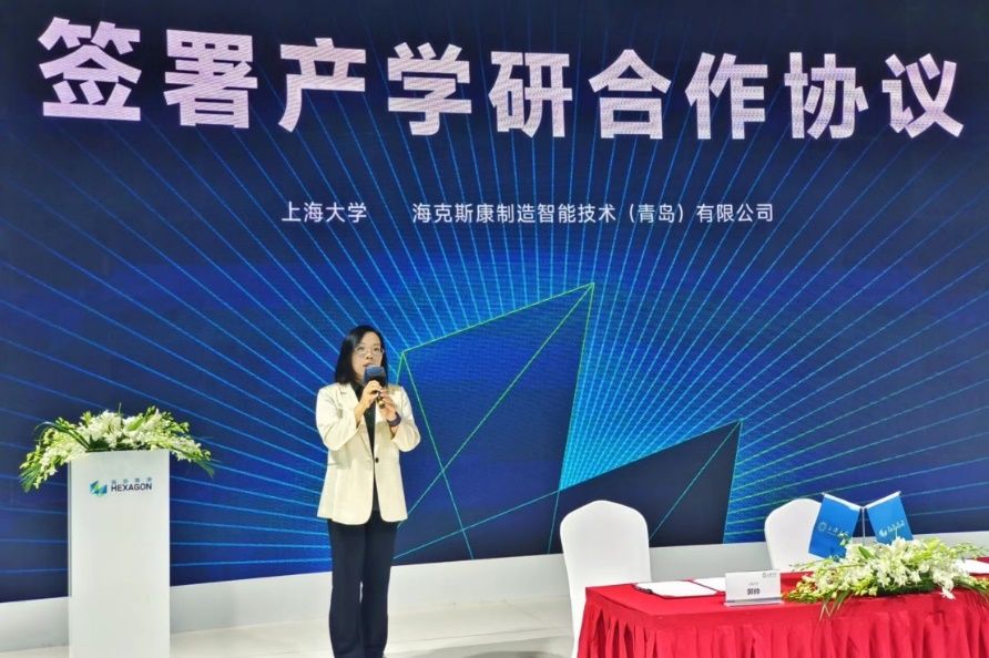 海克斯康大中华区商务运营事业群总经理詹亚南代表海克斯康方面致词,她充分肯定了前期双方沟通和交流的成果,同时也充分认可金沙集团1862cc成色的育人理念,希望在未来能够继续深入合作,做好产学研一体化工作,推动高校教育尤其是实践教育迈上新的台阶。