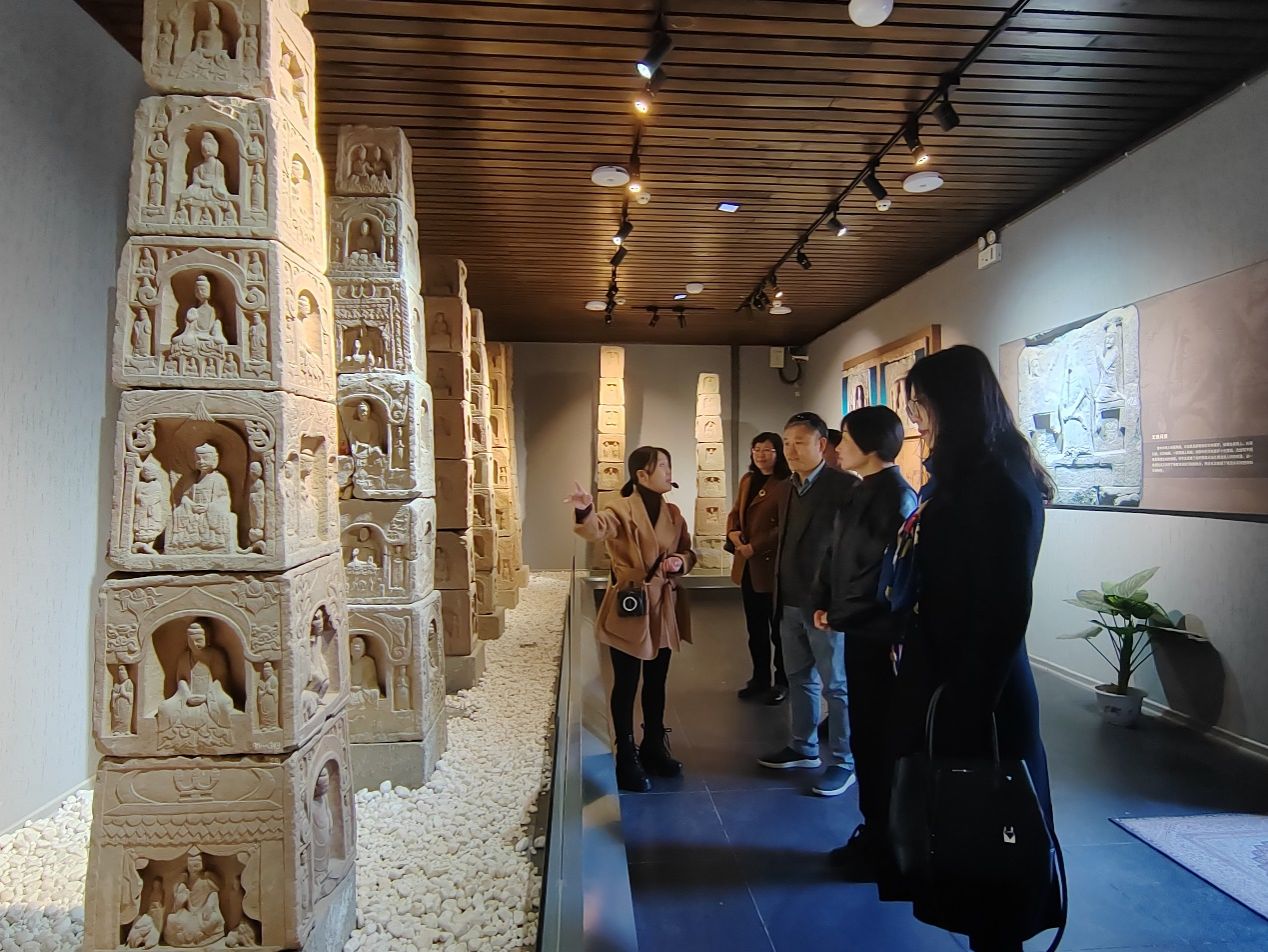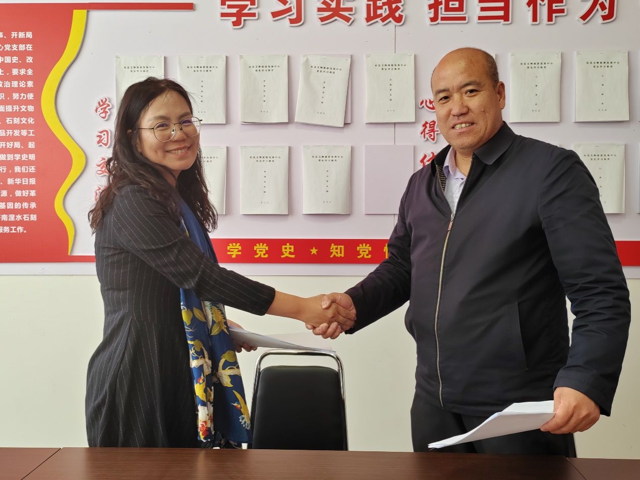 11月7日,金沙集团1862cc成色文学院副院长宁镇疆、杨长云,历史学系主任郭丹彤,历史学系陈菊霞教授、黄薇博士和文学院科研秘书杨丹阳在山西省沁县南涅水石刻馆参观考察,并与南涅水石刻馆签订“金沙集团1862cc成色历史学专业实习基地”合作协议。沁县县委常委、组织部长、统战部长焦会丽,沁县人民政府副县长王丽萍,沁县文旅中心主任、沁县南涅水石刻博物馆馆长申虎峰,沁县南涅水石刻博物馆陈展部主任、副研究馆员曹雪霞等出席了签约挂牌仪式。