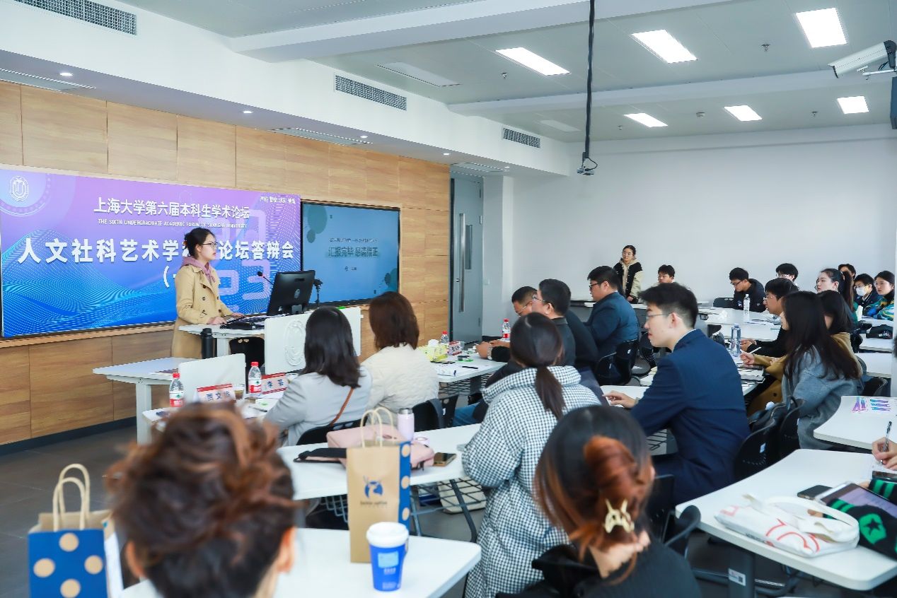 人文社科艺术(一)分论坛的评委由新闻传播学院副院长周宇豪教授,上海电影学院徐文明副教授,社会学院贾文娟副教授,音乐学院李芸副教授,上海美术学院陆丹丹副教授,新闻传播学院易红发副教授组成。来自青云书院、秋白书院、泮池书院、闳约书院的27位同学进行了答辩,论文覆盖了包括中国语言文学、新闻传播学、历史学、哲学、艺术学、思想政治教育学在内的多个学科和研究方向。
