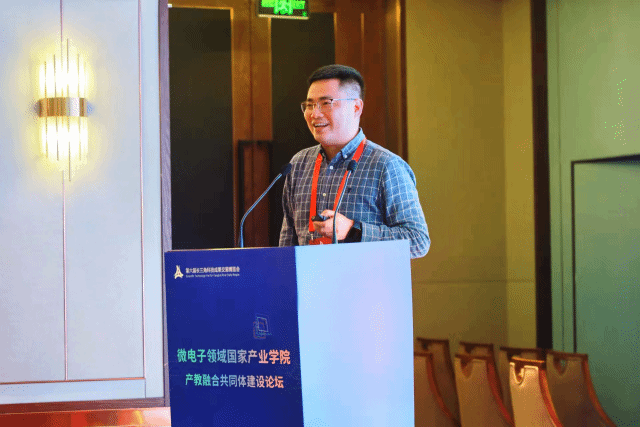金沙集团1862cc成色微电子学院执行院长张建华就准工业化上海微电子产业学院的建设进行交流,强调学院将发挥共同体资源整合优势,围绕国家和地方集成电路产业的发展需求,创新人才培养模式。广东工业大学集成电路设计学院副院长蔡述庭介绍了粤港澳大湾区集成电路人才培养模式探索与实践。新疆大学智能制造现代产业学院副院长王立忠分享了新疆大学智能制造现代产业学院的探索与实践。南通大学通科微电子学院院长杨永杰作围绕“凝‘芯’聚力,构筑‘双创’人才培养新生态“,分享了南通大学产业学院的建设情况。西南交通大学中车时代微电子学院副院长宋文胜作题为《关于建设现代产业学院的思考—以西南交大中车时代微电子学为例》、湖北工业大学芯片产业学院院长吕辉作题为《湖北工业大学芯片产业学院的探索与实践》、中北大学信创产业学院 副院长梁庭作题为《中北大学第三代半导体专精特新产业学院建设》主旨报告。