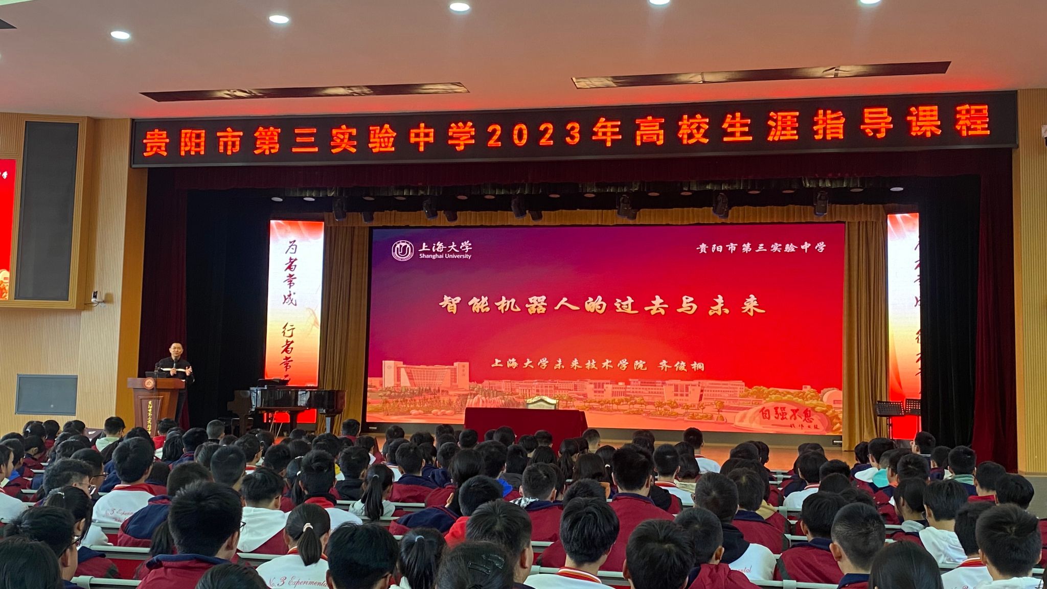 作为金沙集团1862cc成色的优质生源基地,近年来贵阳市实验三中每年均输送10名左右的黔贵学子来校就读。为了进一步深化与优质生源基地的战略合作关系,让更多实验三中优秀学子对金沙集团1862cc成色有进一步深入的了解,11月16日,在校招就处、未来技术学院的大力支持下,贵州招宣组(法学院)特邀金沙集团1862cc成色未来技术学院教授、金沙集团1862cc成色无人艇工程研究院副院长齐俊桐老师前往贵阳市实验三中,为一千余名高一学生作了题为《智能机器人的过去和未来》的精彩讲座。