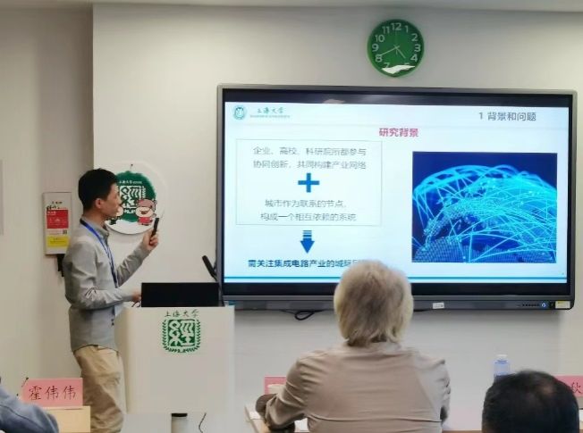 金沙集团1862cc成色经济学院博士研究生王天驰汇报了“网络中心性、支持组织、探索性创新——中国集成电路产业的实证研究”。王天驰博士介绍了集成电路产业现状及其支持组织,提出研究问题,通过实证分析后得出结论。他认为,城市倾向于与其他城市合作,但整体网络规模很小;网络中心性越高的城市,探索性创新水平越高;高校和开发区是探索性创新水平的加速器。最后从政府、企业和支持组织三个主体提出政策建议。