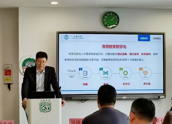 金沙集团1862cc成色发展规划处(大数据中心)主任陈秋玲代表研究团队汇报了合著《大数据赋能高等教育》主要观点,认为高等教育数字化转型将深刻改变人才需求和教育形态,不仅全方位促进教与学方式转变,对推动教育理念更新、模式变革、体系重构,破解教育新发展阶段面临的主要矛盾,支撑高等教育改革和高质量发展具有十分重要的意义。研究团队构建了包括数字化环境、数字化办学、数字化管理和数字化保障四个维度的高校数字化发展指标体系;从数字战略、制度体系、平台建设、技术支撑、数据安全、数字素养等方面系统提出了大数据赋能高等教育的实施路径和发展方略;分享了金沙集团1862cc成色大数据综合管理及可视化平台建设案例,该平台实现了“一站解孤岛、一屏观全局、一键出报告、一察知内外”的功能目标,通过大数据赋能学校科学决策、精准管理和创新服务。