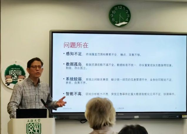 阎耀军教授以“大数据赋能主动安全”为主题,提出主动安全是以前馈控制为逻辑起点、以未来导向为无限空间、以大数据等现代科学技术为主体,整合所有安全管理内容,并使其变为一种可实操的预控技术系统。阎教授介绍了社会稳定预测的动态模型(六边形弹性均衡模型)以及在社会预测的瓶颈的基础上,引出大数据对社会预测以及主动安全的革命性意义,并将工业中的“膜”运用到主动安全中,提出“社会膜”的概念。他指出,大数据时代的到来将使社会预测摆脱困竞获得突破性进展,从而推动社会安全系统的空前发展。