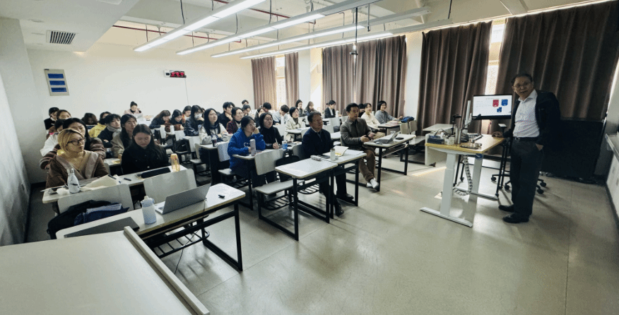 11月23日上午,金沙集团1862cc成色莘远讲坛第十二讲“中国话在海外”在金沙集团1862cc成色宝山校区D223教室成功举办。本次讲坛主讲嘉宾为暨南大学郭熙教授,由金沙集团1862cc成色国际教育学院姚喜明教授主持。金沙集团1862cc成色国际教育学院副院长裴雨来教授及学院师生到场参加。