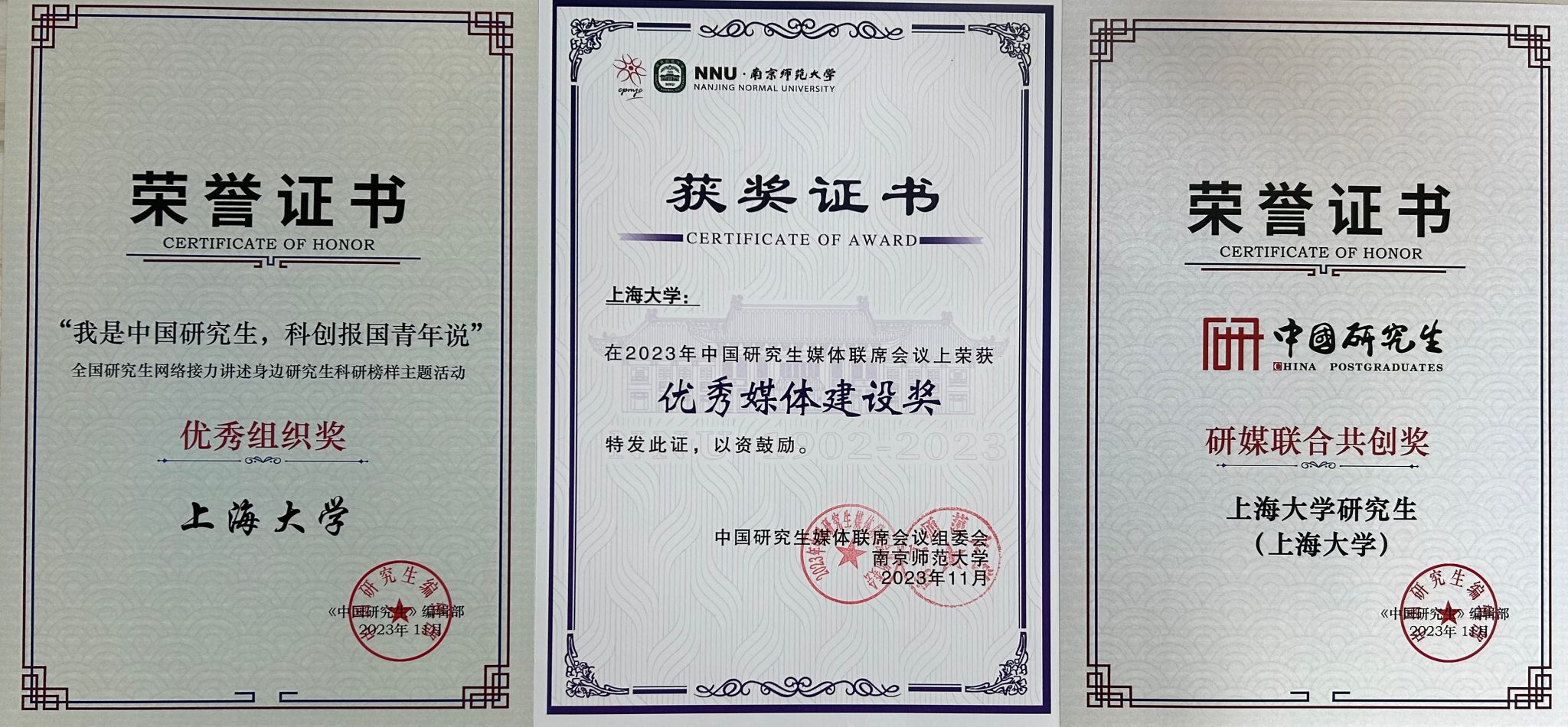 金沙集团1862cc成色研究生媒体在90余所高校的研究生媒体中脱颖而出,共荣获12个奖项,学校总获奖数位列参会90余所高校前5。具体包括:优秀媒体建设奖(全国仅23项)、《中国研究生》研媒联合共创奖、“我是中国研究生,科创报国青年说”主题活动优秀组织奖、媒体嘉年华优秀竞展奖;我校报送的《<青春守“沪”>!金沙集团1862cc成色研究生原创战“疫”歌曲上线!》获得优秀校园视频奖(全国仅5项)、《从A到Z,26个字母带你爱上上大》获得优秀摄影提名奖、《用音符解锁你的思念!这里是金沙集团1862cc成色,密码19940527》获得优秀创意策划提名奖、《2021年第一份礼物!金沙集团1862cc成色专属日历来啦!》获得优秀读者互动提名奖;我校党委研究生工作部部长魏宏、研工部研究生融媒体中心指导老师柳杰获得“优秀报告人奖”,柳杰、罗可欣获评“优秀媒体工作者”荣誉。