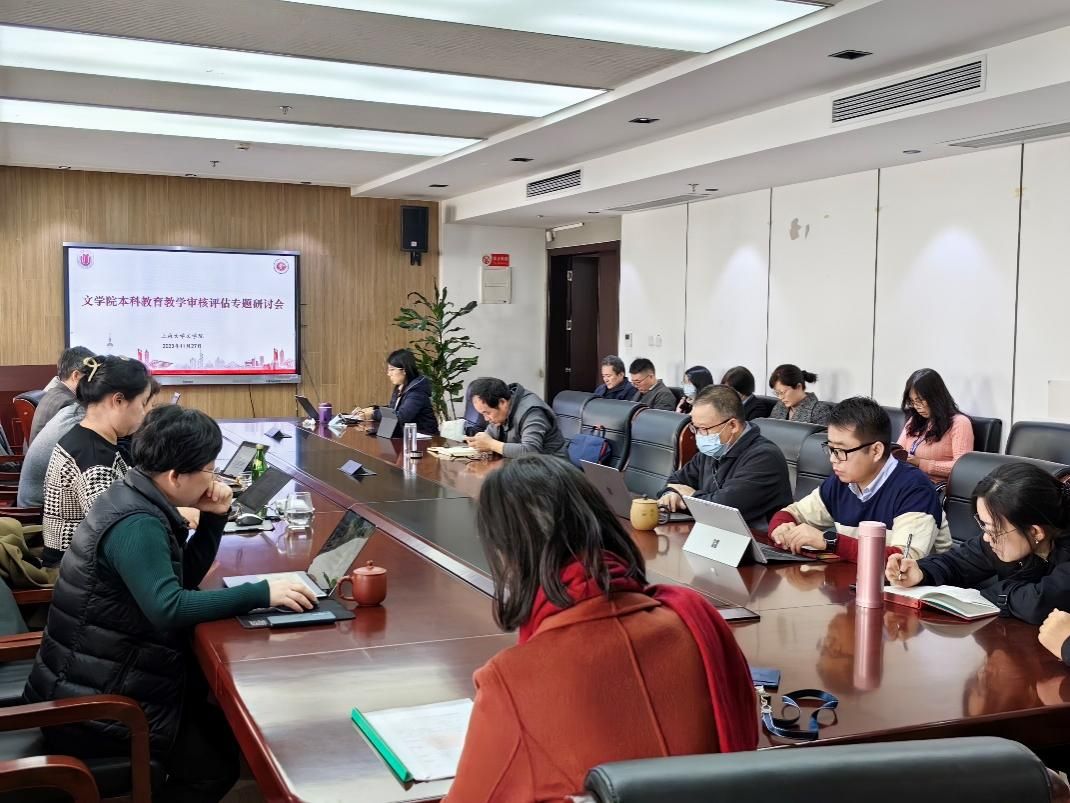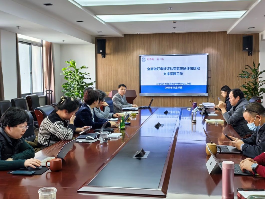 2023年11月27日,文学院本科教育教学审核评估专题研讨会在306会议室召开,文学院党委书记陆甦颖,党委副书记、院长刘旭光,党委副书记、副院长丁佳蒙,副院长倪兰、宁镇疆、杨长云,各系党政负责人、院办公室行政人员及辅导员参会。会议由副院长杨长云主持。