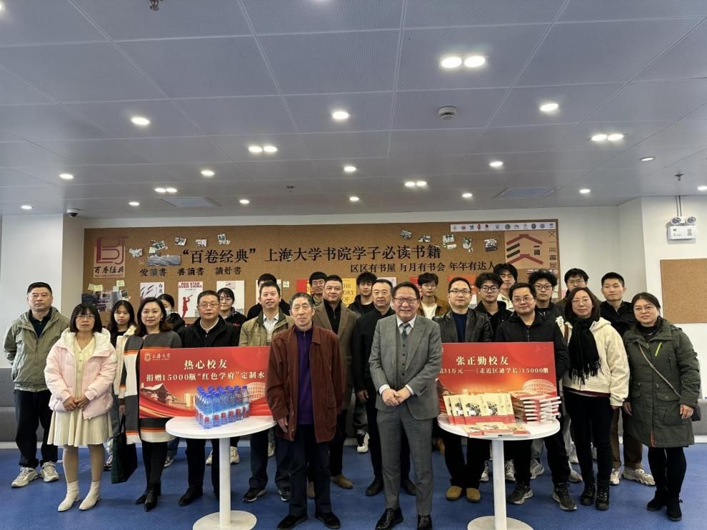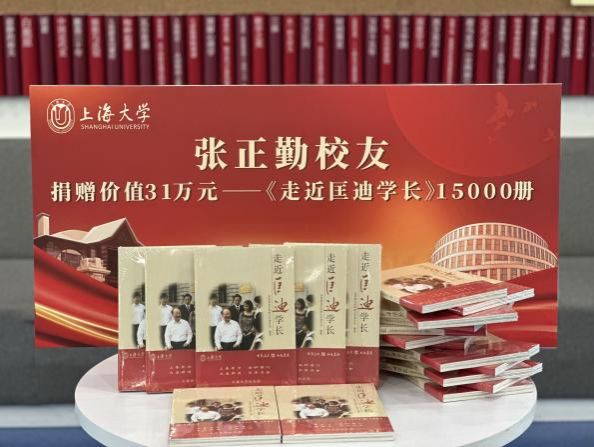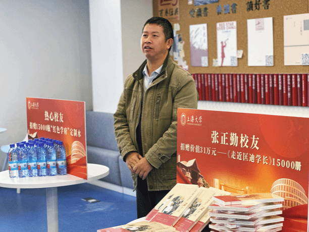 出席捐赠仪式的学生代表接受陈挺、张正勤两位校友的饮用水与《走近匡迪学长》一书。捐赠的饮用水将放置在图书馆24小时学习空间等处供全校师生自取使用;捐赠书籍也将发放给同学们,鼓励大家从书中汲取青春奋进之力量。
