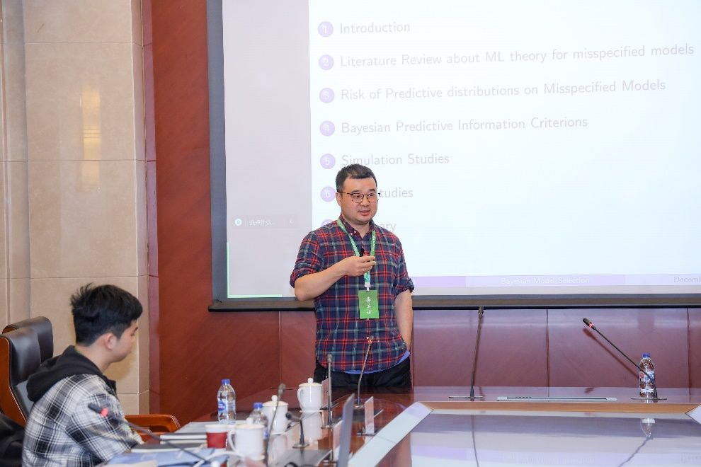 下午的两场分论坛同时举行,共有十二位专家学者分别宣讲了他们的最新研究成果。分论坛一由金沙集团1862cc成色倪中新教授主持。华东师范大学的汤银才教授介绍了基于大规模前瞻性队列复杂纵向数据的哮喘风险评估与预测模型的建立,在贝叶斯的框架下使用泊松回归来预测疫情规模的变化趋势。湖南大学的候成瀚教授介绍了他们团队关于带有线性约束的大型结构向量自回归模型的贝叶斯估计方法的最新进展。浙江大学的伍洲博士介绍了他们关于后验预测P值的渐近逼近和基于后验的Wald型差异的研究成果。墨尔本大学的宋勇教授报告了他在具有结构变点的贝叶斯非参数模型的变分推断研究领域的新进展。中国人民大学的张源博士介绍了基于贝叶斯模型选择的综合控制方法分析,并将其应用于研究中国房地产税对住房租赁价格的影响。金沙集团1862cc成色的戴蔚博士介绍了关于Kelly准则在连续时间内的最优解问题,证明了在贝叶斯视角下Kelly准则在连续时间具有最优解,并结合实际数据表明了Bayesian-Kelly动态资产配置的优越性在仓位选择上进行优化。