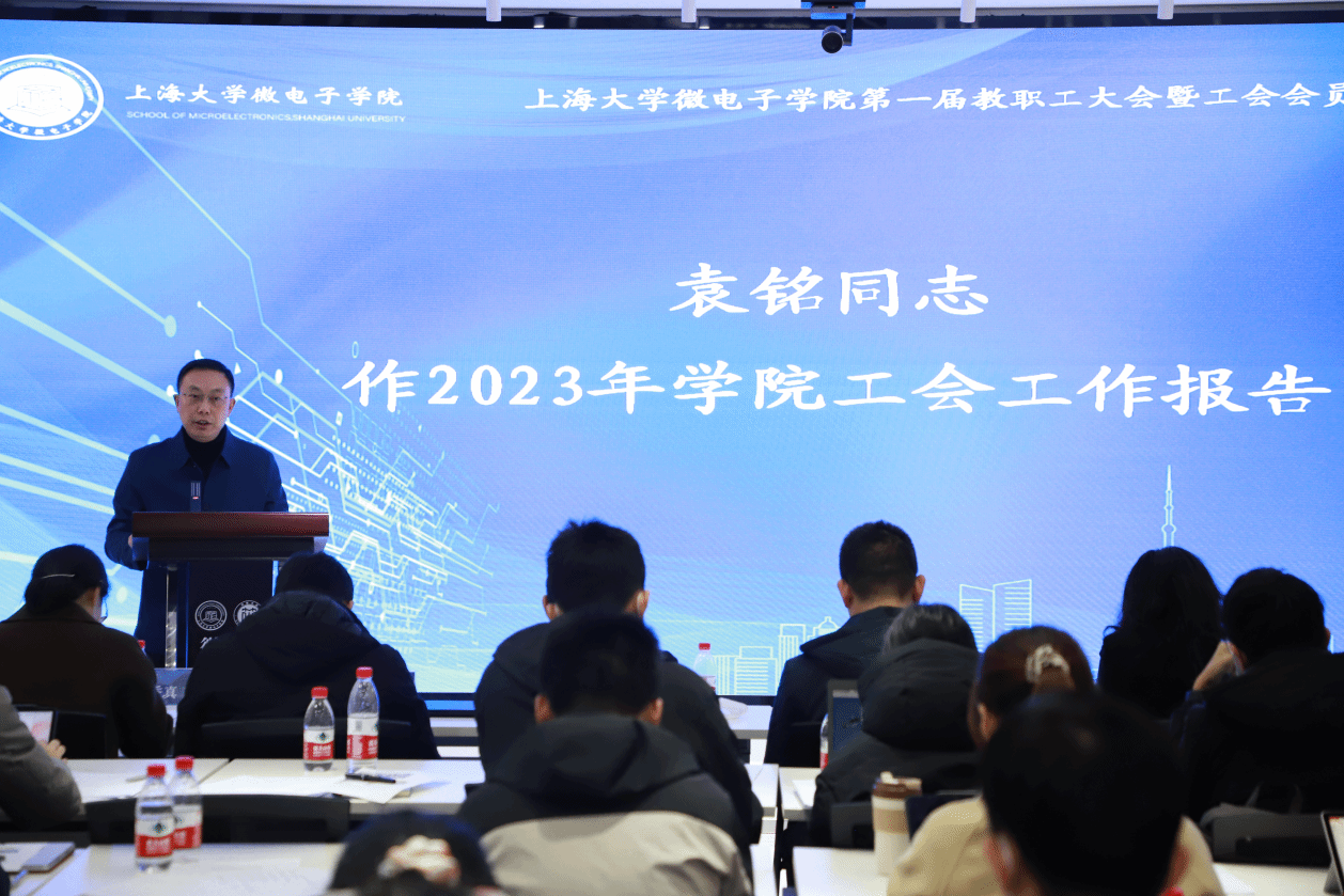 12月12日下午,微电子学院第一届教职工大会暨工会会员大会第三次会议在微电子学院A楼101会议室召开。微电子学院班子成员及教职工参加会议。会议由学院党委副书记、副院长,分工会主席袁铭同志主持。