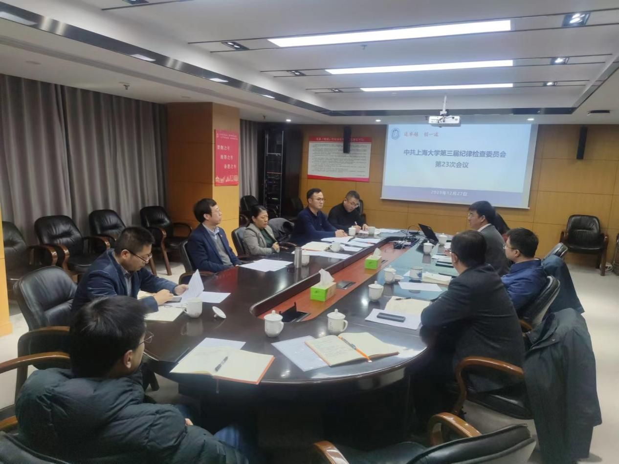 会议落实“第一议题”制度,深入学习了习近平经济思想、习近平文化思想以及习近平总书记考察上海重要讲话精神和深入推进长三角一体化发展座谈会重要讲话精神。校纪委委员逐一结合实际谈学习体会,并报告2023年联系二级党组织工作的情况。会议听取2023年学校纪检监察主要工作情况、有关学校纪检监察工作制度建设情况以及学校纪检监察干部队伍教育整顿工作开展情况,审议并通过了关于对“一把手”和领导班子监督的重点事项制度等内容。