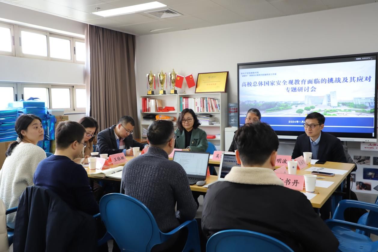 为进一步在育人一线落实习近平总书记提出的“国家安全是头等大事”的要求,2024年1月2日,溯微书院联合沪上相关高校、兄弟院系专家举行高校总体国家安全观教育面临的挑战与应对专题研讨会。复旦大学社会发展与公共政策学院党委副书记刘明波、华东理工大学艺术设计与传媒学院党委副书记王珊、上海科学技术职业学院马克思主义学院院长王依娜,金沙集团1862cc成色文学院原党委书记吴仲钢、上海美术学院党委副书记宋国栓、马克思主义学院副教授王金伟以及相关辅导员参加此次研讨会,此次研讨会也是“避雷针”网络安全教育书院辅导员工作室的年度建设内容。研讨会由微电子学院党委副书记、副院长,溯微书院执行院长、工作室负责人袁铭主持。
