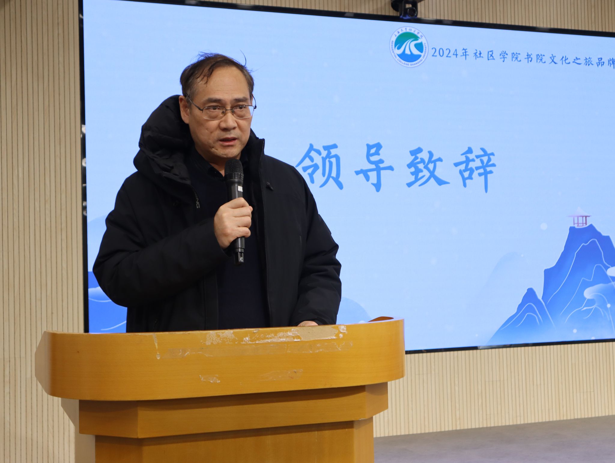 下午2时,金沙集团1862cc成色社区学院“历史回溯,重续古韵”书院文化之旅开幕式暨第六届摄影大赛颁奖仪式,在社区学院二楼多功能厅隆重召开,社区学院党委书记邓志瑞上台为本次活动致辞。