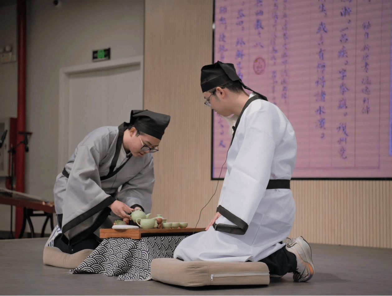 《茶经》情景剧表演,是学生根据《典籍里的中国—茶经》舞台剧所作的改编。学生们深入历史资料,结合具体史实进行了二次创作,将陆羽与茶、其恩师邹夫子的传奇故事融入其中,通过表演创作的形式让传统文化在学生心中“活”起来,带领学生们在袅袅的茶香之中品读《茶经》,感悟陆羽“精行俭德”的传奇一生。