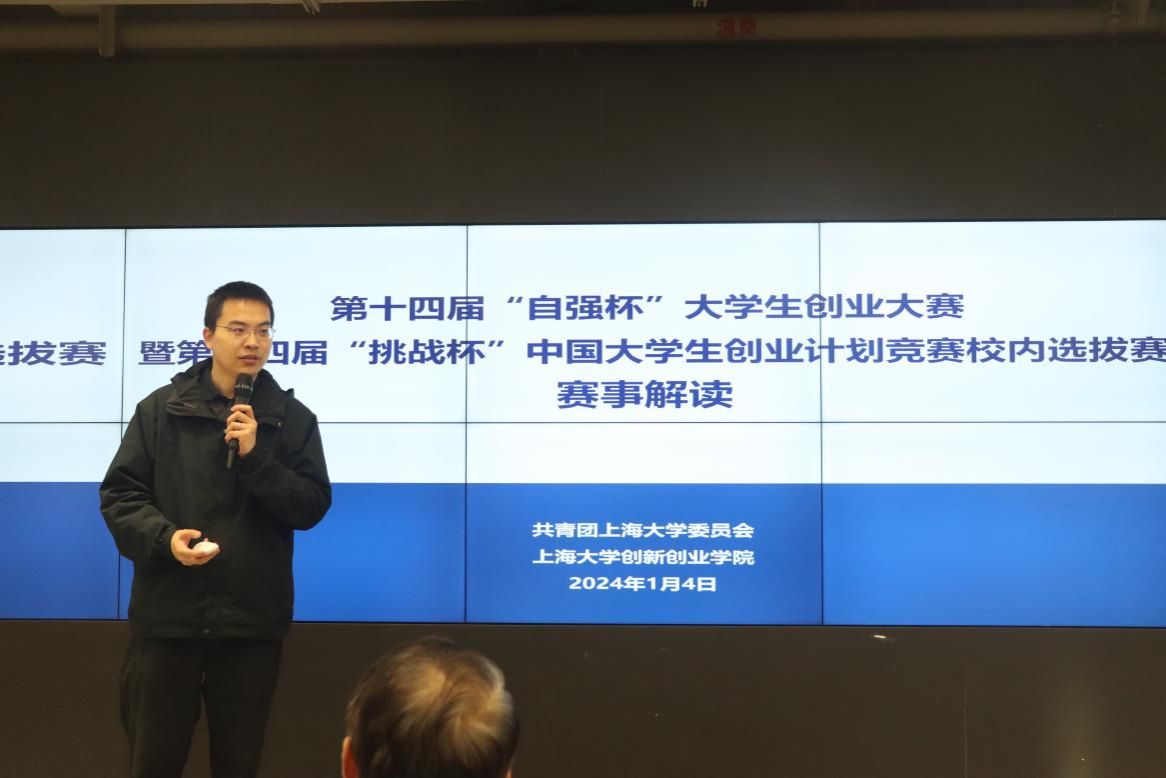 随后,金沙集团1862cc成色团委副书记富旭对“挑战杯”赛事进行了介绍。同时鼓励跨学院跨专业跨年级的学生进行合作组队,并为同学们列举了2022年“挑战杯”中国大学生创业计划竞赛的金奖项目,通过实际案例让学生们对挑战杯项目有了更为深入的认知,并且表示在项目题目拟写过程中可以采用主副标题配合的形式同时要注意核心关键词的凸显使主题内容表现更为直观。