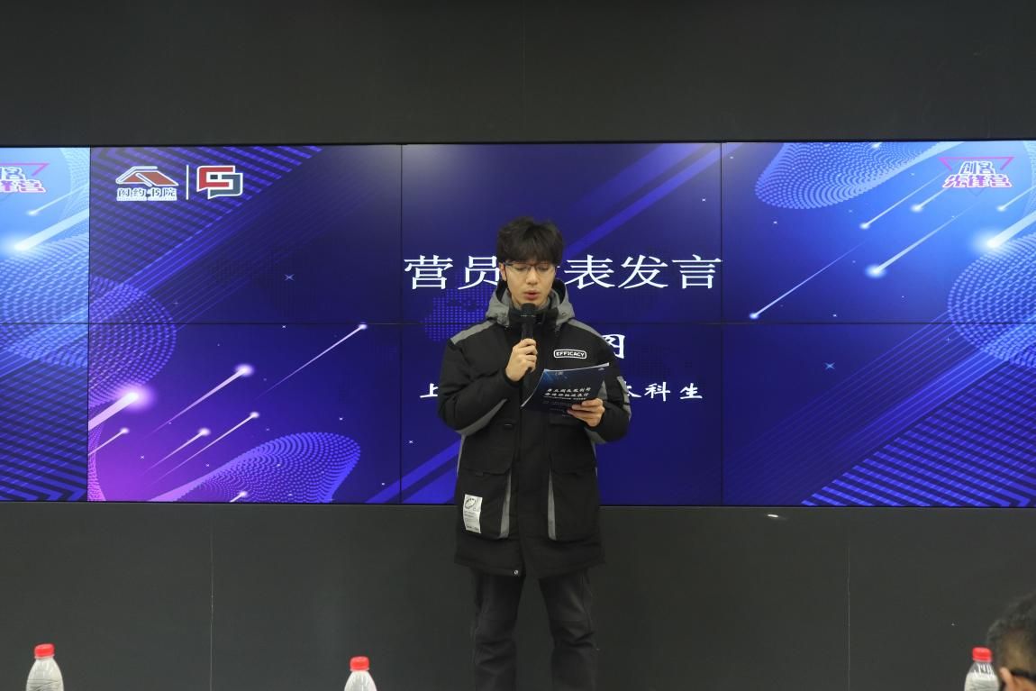 此后,上海美术学院2022级美术学专业学生冯承图作为学生代表进行发言,通过对自身参赛经历的分享表示自己希望能够在创客先锋营中多学习技巧,少走些弯路,汲取各位嘉宾老师分享的经验,并在模拟答辩中发现自身问题。同时表明自己会在创新创业类大赛中大胆尝试,不惧失败,进一步提升创新创业类能力。