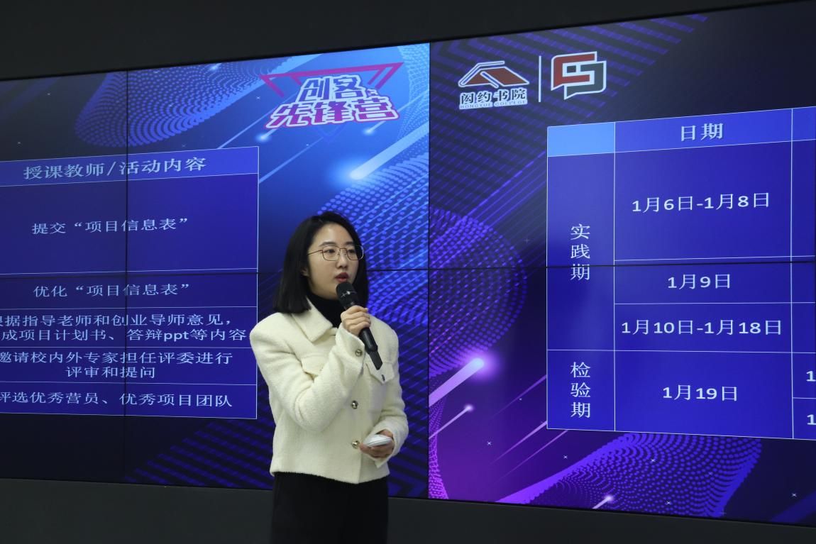 紧接着,金沙集团1862cc成色新闻传播学院团委副书记朱珈仪介绍了创客先锋营的整体安排。整体划分为三个阶段:培训期、实践期和检验期。在培训期中会邀请到嘉宾对创新创业类赛事进行全面解读,同时邀请一些优秀团队为同学们带来经验分享,在实践期中希望各个团队能够多加交流沟通,在检验期中会邀请专业导师为同学们进行指导完善,希望创客先锋营可以带领同学们走向更好的创新创业之路。