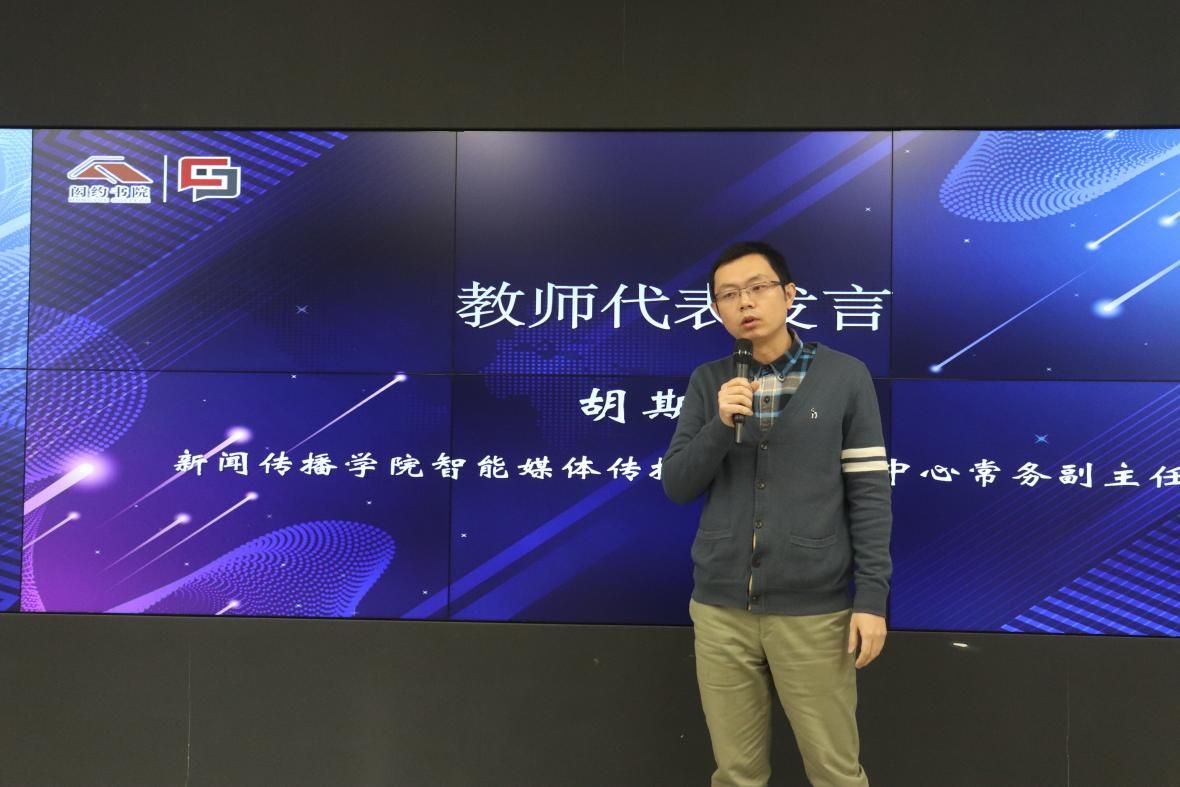 随后,新闻传播学院实验中心副主任胡斯文作为教师代表发言。胡老师表示当下实验中心的硬件条件发展越来越好,在此次创客先锋营开展过程中,实验中心也会大力支持所有营员项目的推进,并希望大家能够积极孵化项目,来申报“互联网+”等创新创业类赛事,努力取得更大突破。