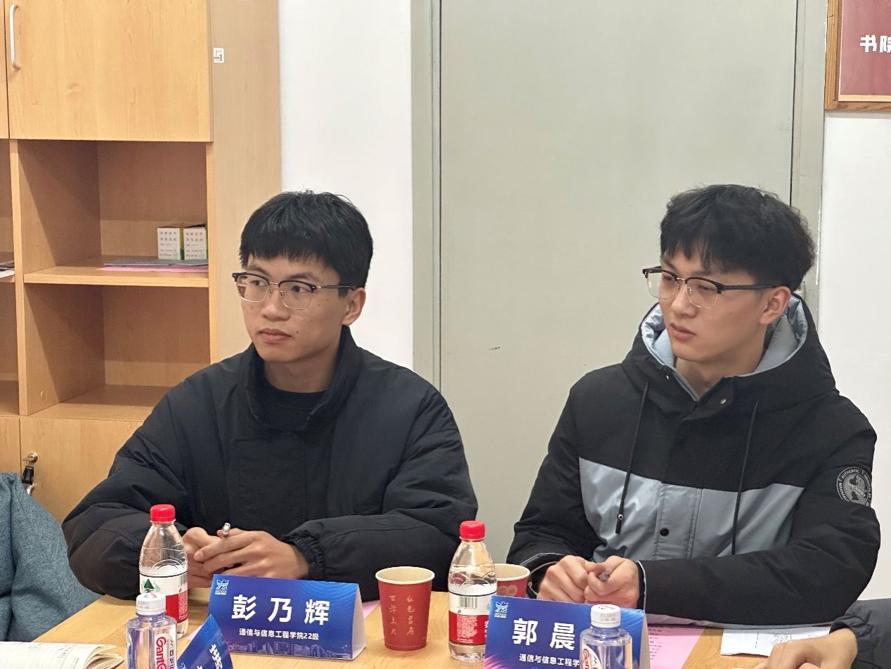 交流环节中,来自通信与信息工程学院的22级学生郭晨飞首先向院长提出了自己在学业上的困惑,他觉得在加入了课题组一个月之后,始终找不到前进的方向。王廷云院长告诉他,专业探索是一个过程,需要自己主动去寻找突破口,多多与课题组内的学长学姐们交流,有些甚至比书本上学到的知识更加灵活实用;除此之外,还必须要调整好自己的心态,大二阶段还是要以学业为主,充分高效利用好课余时间培养自己的其它兴趣爱好。