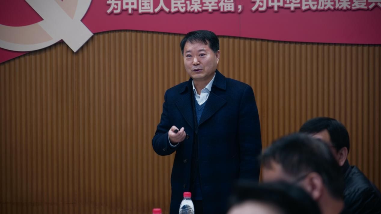 新闻传播学院党委书记王晴川以《扎实推进‘五个深度融入’,以高质量党建推动学院发展》为主题,汇报了学院党委坚持党的全面领导,推进党建工作与中心工作深入融合,并从政治建设、思想建设、组织建设、作风建设、纪律建设等五个方面,阐述学院党建工作的特色亮点与做法,并汇报了学院党委在新的一年,狠抓基层党建工作的新思路和新打算。