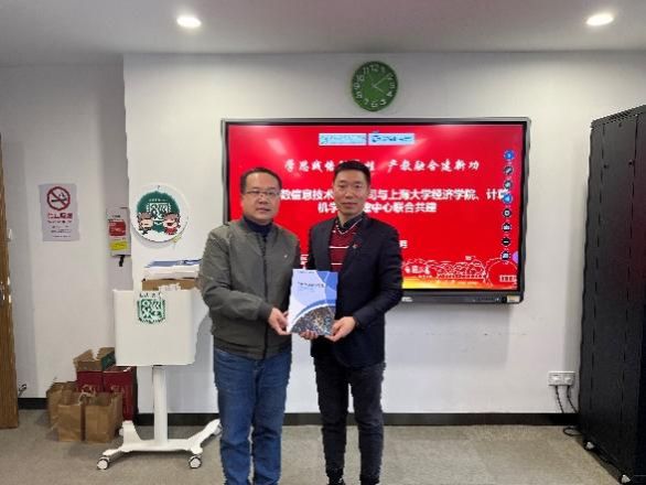 会后,金沙集团1862cc成色经济学院党委副书记、副院长冯玉鑫老师代表学院向上海荣数信息技术有限公司赠送《百年上大》画册,上海荣数信息技术有限公司党支部纪检委员唐军先生也代表公司向经济学院赠送2023年消费金融数字化转型主题调研报告。