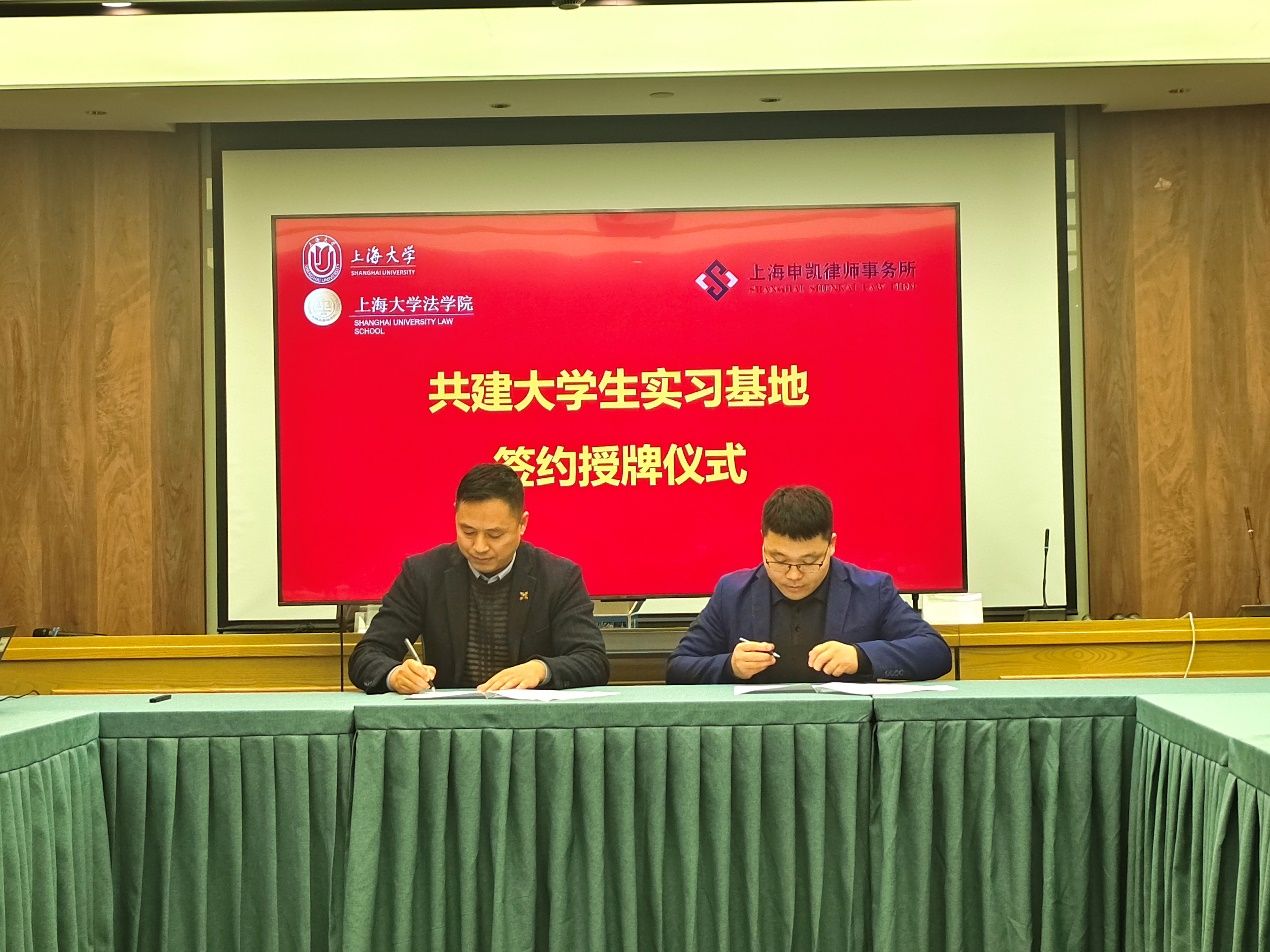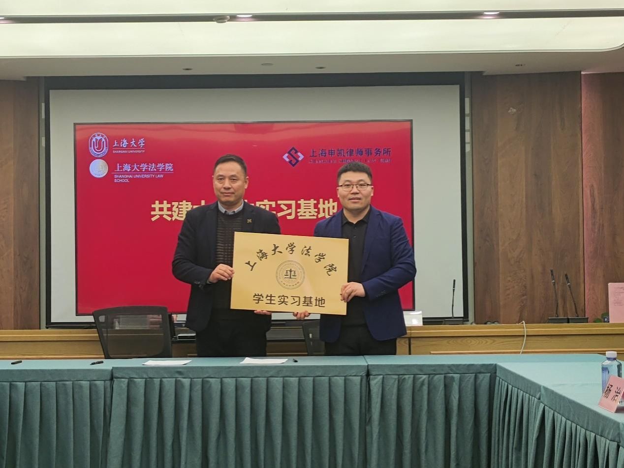随后,举行了院所共建大学生实习基地签约授牌仪式。于伟老师和高其彬律师分别代表金沙集团1862cc成色法学院和上海申凯律师事务所签署共建协议,并举行“金沙集团1862cc成色法学院学生实习基地”授牌仪式。