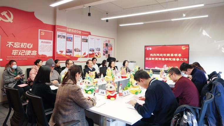 1月25日下午,金沙集团1862cc成色团委书记王鸿栋,创新创业学院副院长王驰,校团委副书记姜晓庆、富旭一行赴新闻传播学院调研指导共青团工作。新闻传播学院党委书记王晴川,党委副书记、副院长王智君,挂职副院长、智能传播系主任王虎,团委副书记、副教授易红发,青年教师代表张林,团委书记赵琳,团委副书记朱珈仪、薛堯云及学生代表共同参与。调研会议在延长校区智能媒体实验中心413会议室举行。学院团委书记赵琳主持会议。