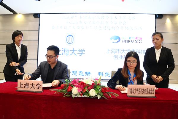 11月3日下午2:00,第十五届“挑战杯”竞赛筹备工作组和上海市大学生科技创业基金会关于开设“天使基金”绿色通道的合作签约仪式暨2016年金沙集团1862cc成色“科创月”启动仪式在绿地中央广场成功举行。