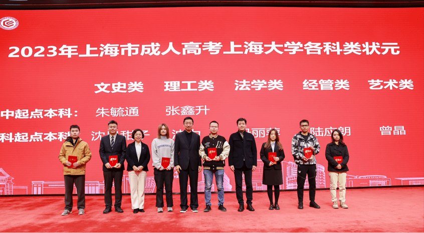 本次新生开学典礼对2023年上海市成人高考金沙集团1862cc成色各科类状元进行了表彰。苟燕楠总会计师、邓江书记、周丽昀院长为同学们颁发新生奖学金并授予校徽。