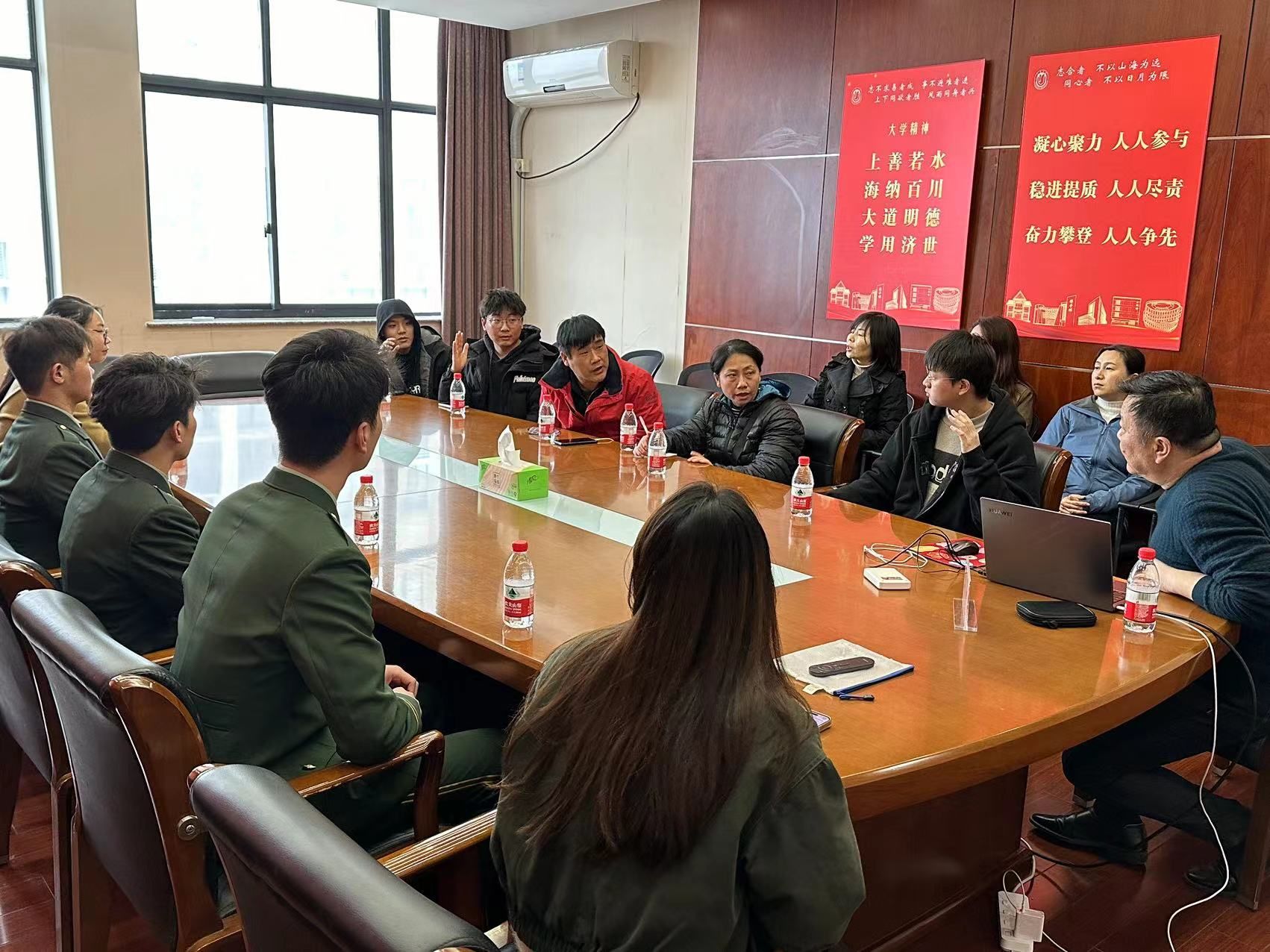 为配合2024年大学生征兵前期工作的进行,扩大征兵宣传的影响力,提高大学生应征入伍的热情,3月15日上午,通信学院邀请金沙集团1862cc成色武装部副部长赵俊与有参军意向的本科毕业班和非毕业班学生进行座谈,会议由学院征兵工作联络人严思远老师主持。