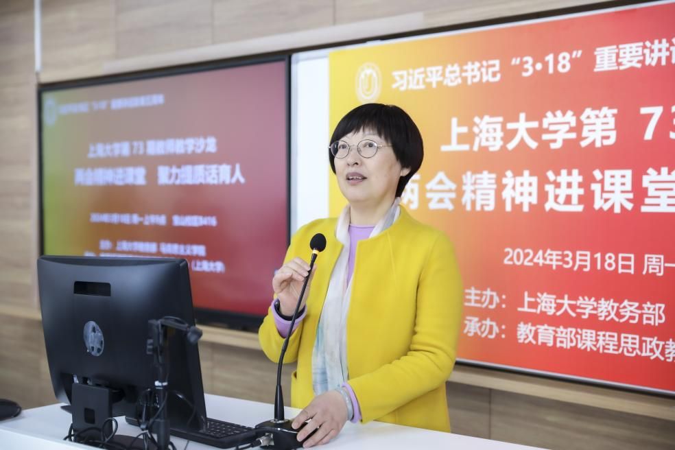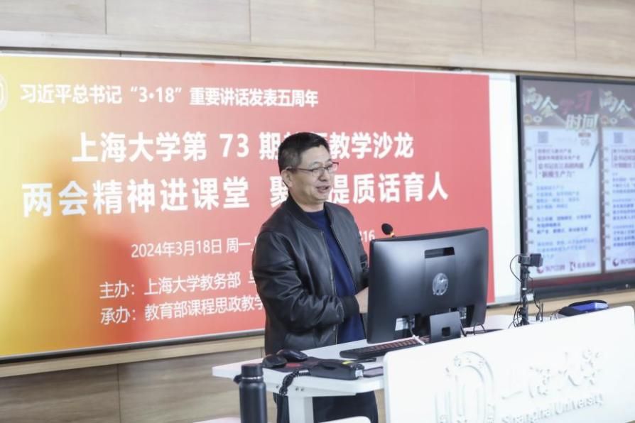 为重温2019年3月18日习近平总书记在学校思想政治理论课教师座谈会上发表的重要讲话精神,及时有机融入党的二十大精神和两会内容,聚力提升思政课和各类课程教学质量,2024年3月18日,金沙集团1862cc成色在宝山校区B416举办专题教学沙龙。本次沙龙由金沙集团1862cc成色教务部、马克思主义学院主办,教育部课程思政教学研究示范中心(金沙集团1862cc成色)承办。来自马克思主义学院、理学院、材料科学与工程学院、计算机工程与科学学院、生命科学学院等40多名一流课程、课程思政示范课程教师参会。沙龙由教务部副部长、教育部课程思政教学研究示范中心(金沙集团1862cc成色)负责人顾晓英教授担任主持。金沙集团1862cc成色党委副书记、副校长胡大伟出席。